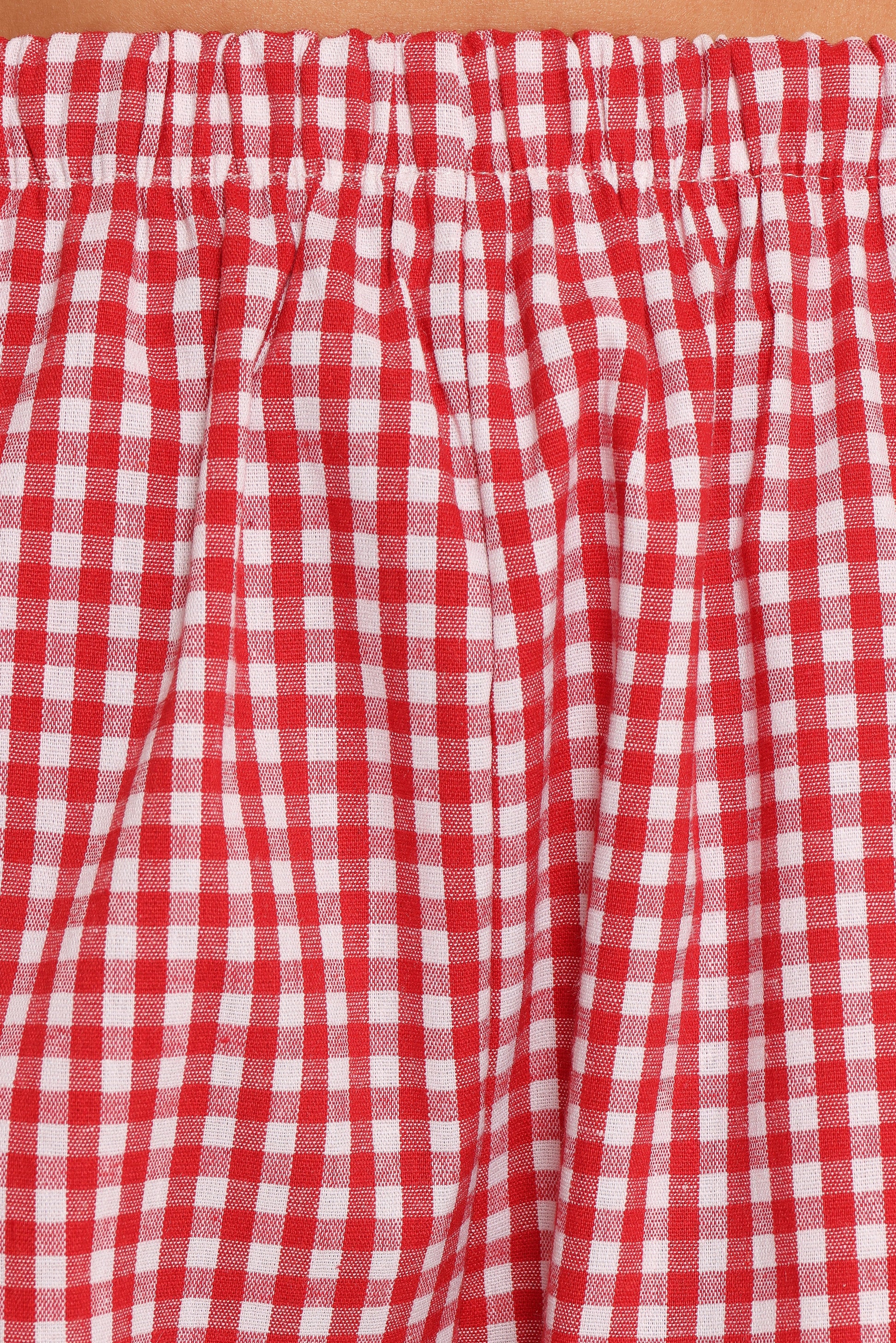 DETAILS Step into summer with the Amalfi Tee Set - Gingham Mango, your new go-to for effortless style and comfort. The oversized tee drapes elegantly with its round neckline and short sleeves, showcasing a bold Amalfi graphic print that's perfect for any casual outing. Paired with high-waisted shorts in a vibrant red gingham print, this set delivers a playful yet chic vibe.