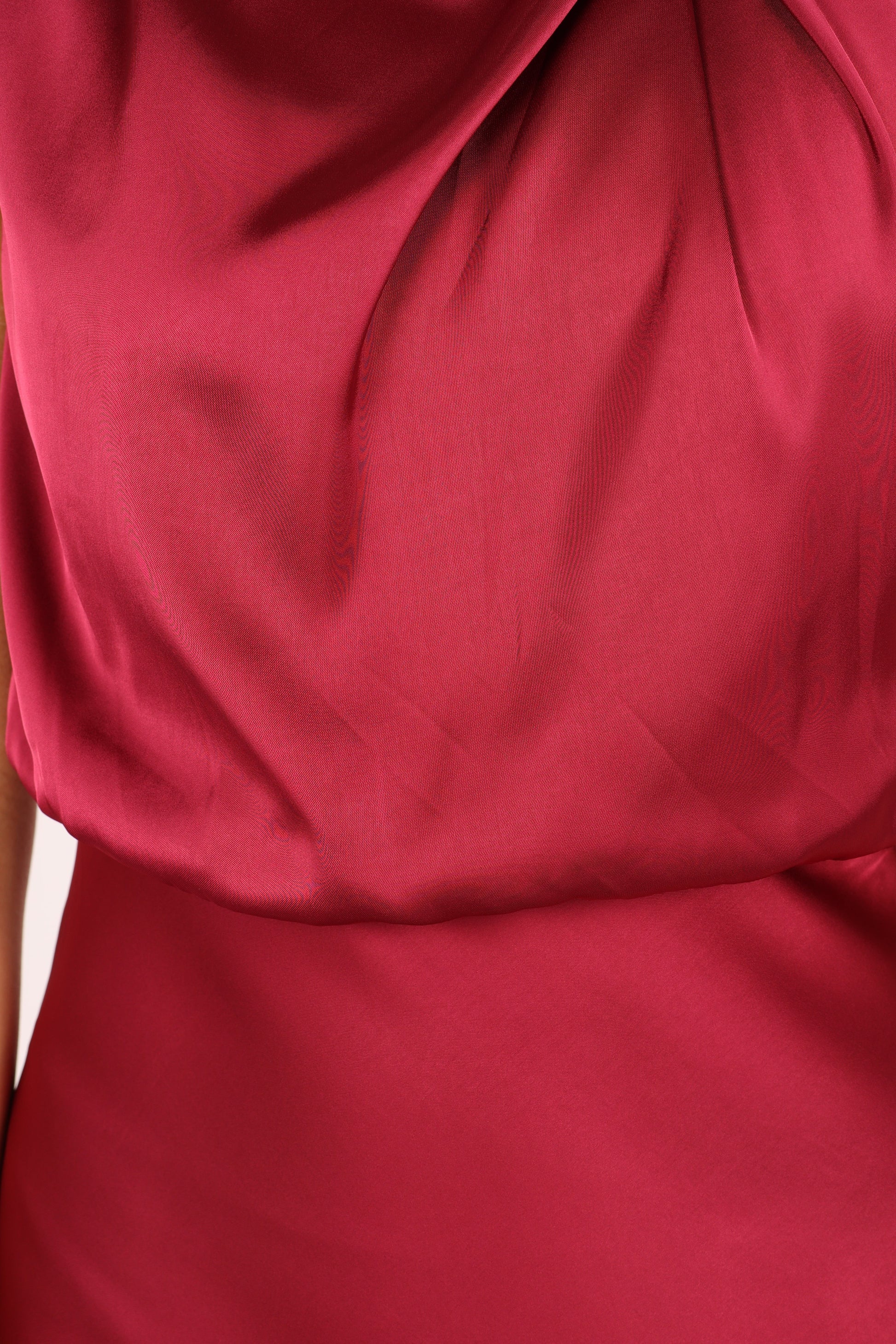 DETAILS Look and feel your best in this stunning event wear dress! Featuring a mini length, an asymmetric high round neckline with gathered pleat detail, plus a back neck opening with button close, it's the perfect party dress for any special occasion. Not only does it look fabulous, but it feels as good as it looks too ??? crafted from a soft satin feel just for extra comfort.