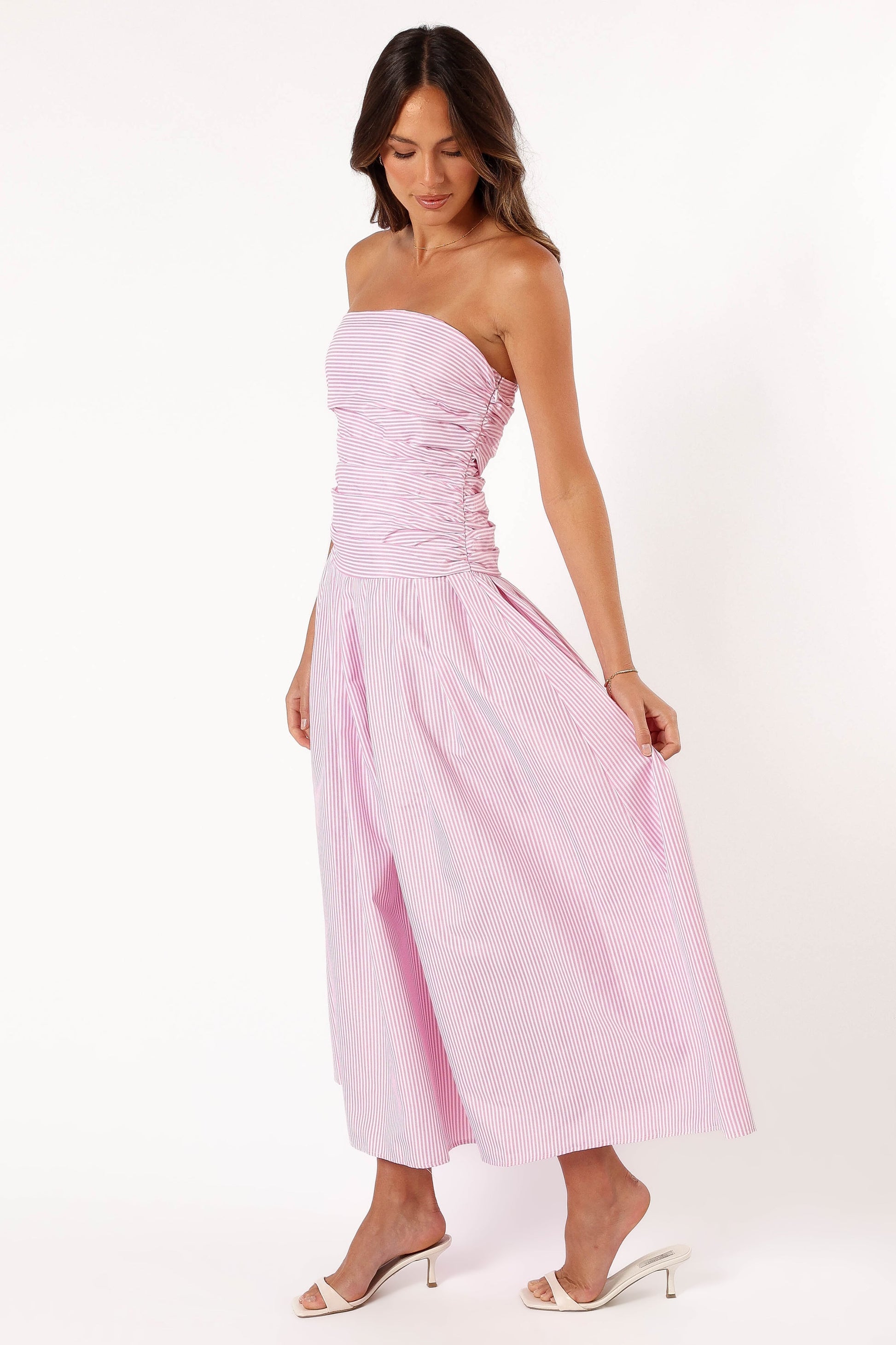 DETAILS Discover the allure of our strapless maxi dress featuring a flattering straight neckline and sophisticated side ruching detail. Elevate your evening look with the seamless design, complete with an invisible side zipper and hook clasp for the perfect fit.