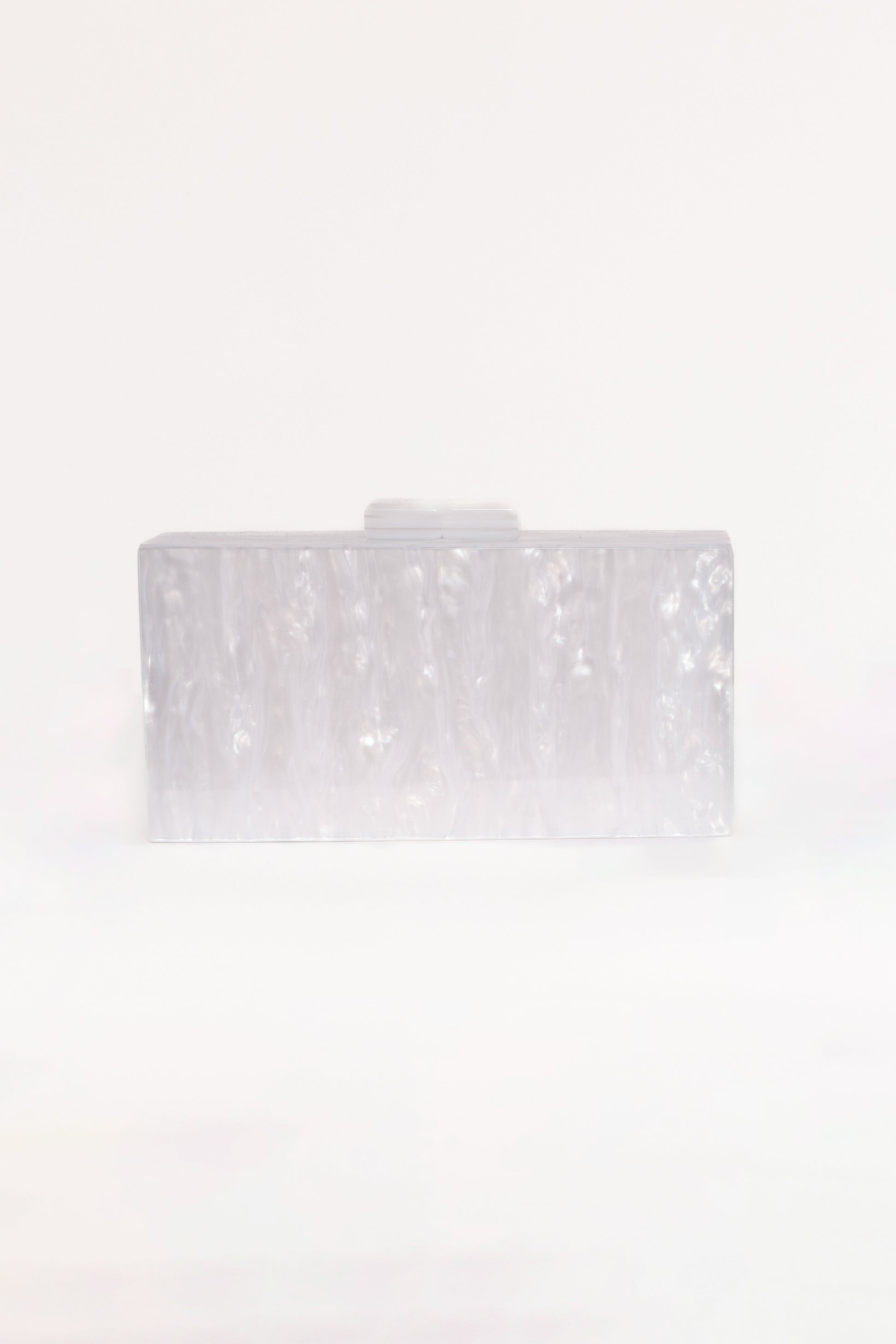 DETAILS With its pearlescent finish, the clutch shimmers delicately under the light, adding a touch of ethereal beauty to your ensemble.