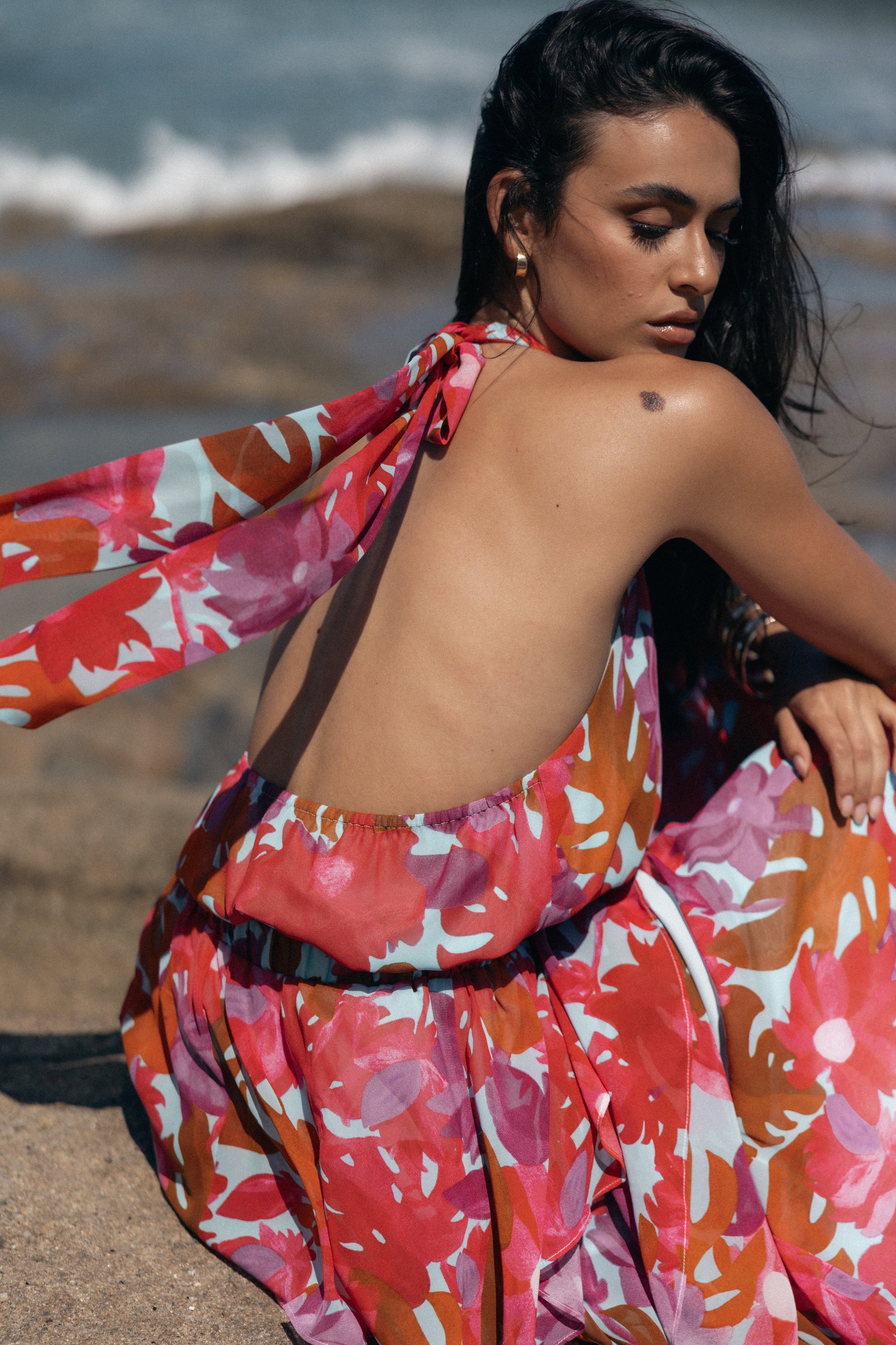 DETAILS Be on trend with our stylish cropped top! The halter neckline and open back with tie close create a flattering silhouette. Perfect for warm weather days, this piece features an elasticised waist for maximum comfort.