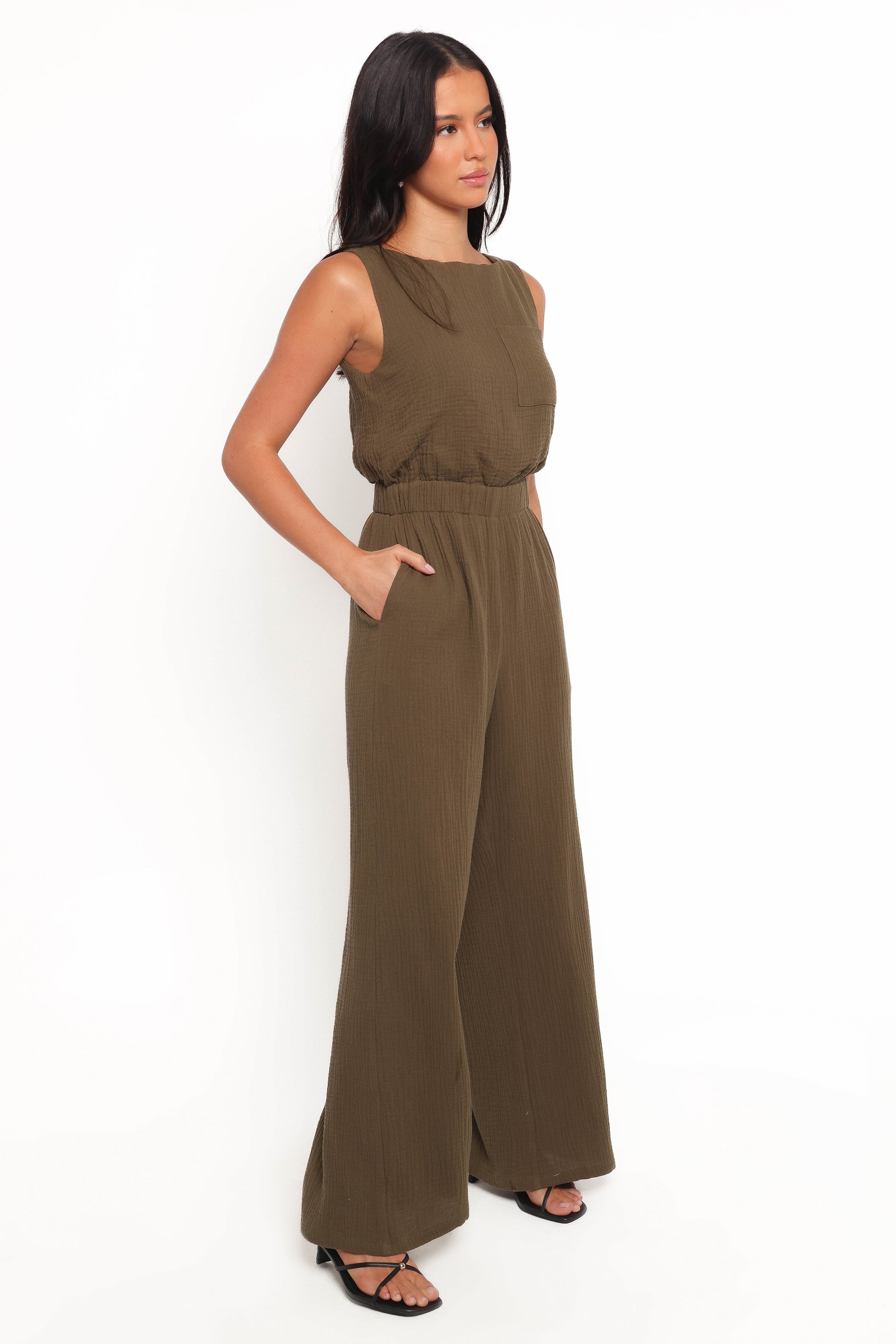 DETAILS Slip into effortless chic with the Brenna Cotton Jumpsuit your ultimate go-to for casual sophistication. Designed with a sleeveless cut and a high round neckline, it delivers understated elegance while keeping you cool and comfortable.