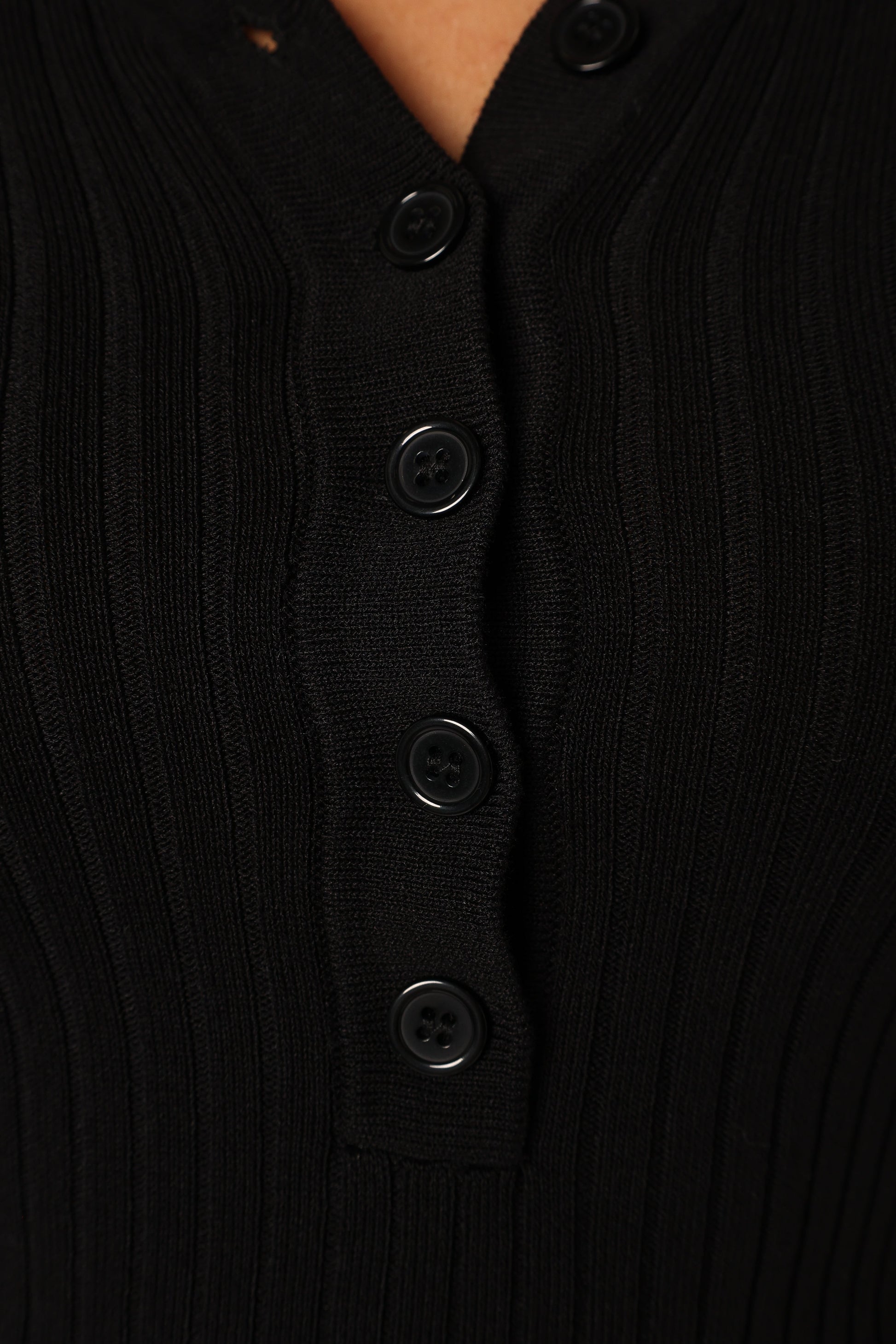 DETAILS Introducing the Cameron Knitted Set in Black. Set, your go-to for comfort and style. This two-piece set features a spread collar top with long sleeves and functional buttons down the front. The high waisted style skirt have an elasticised waistband and slim fit, making them perfect for all day and night.