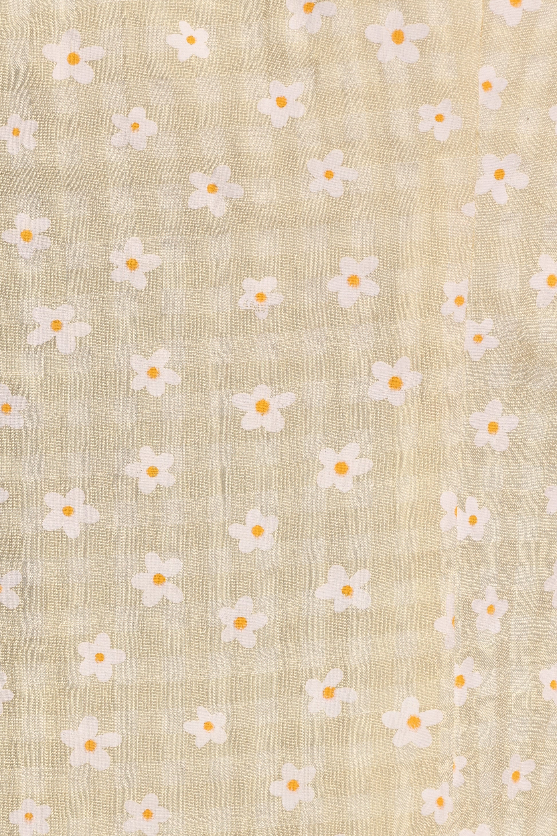 DETAILS The Capra Top in Yellow Gingham, a must-have for elevating your summer wardrobe. Its playful sweetheart neckline and the delicate daisy print on sunny yellow gingham that evokes nostalgic summer picnics.