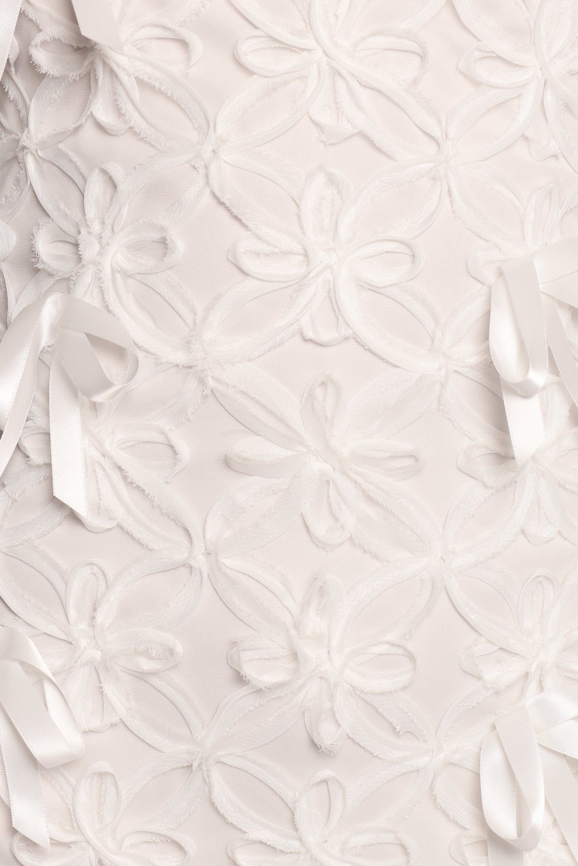 Elegance meets playful charm in our Celestia Mini Dress in White. Featuring a mini length design with delicate floral embroidery, adjustable and off-the-shoulder straps, and a sweet sewn ribbon detail, it's your go-to for effortless style.