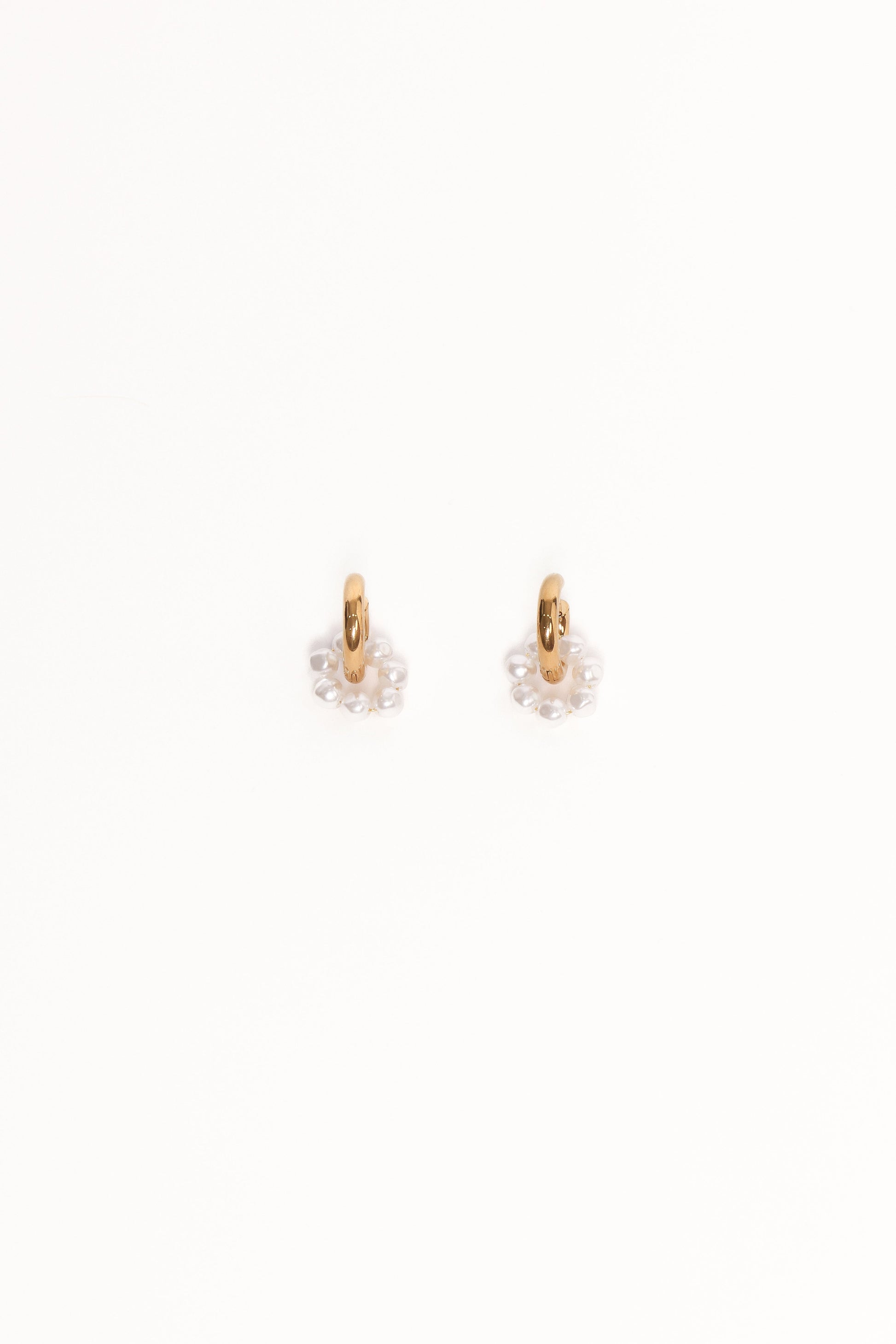 DETAILS Add a touch of elegance to your look with the Cheri Earrings in Gold/Pearl. Featuring a timeless gold hoop paired with a delicate faux pearl detail, these gold-plated beauties elevate any outfit. With a secure clasp close, they're the perfect mix of trendy and classic for any occasion.