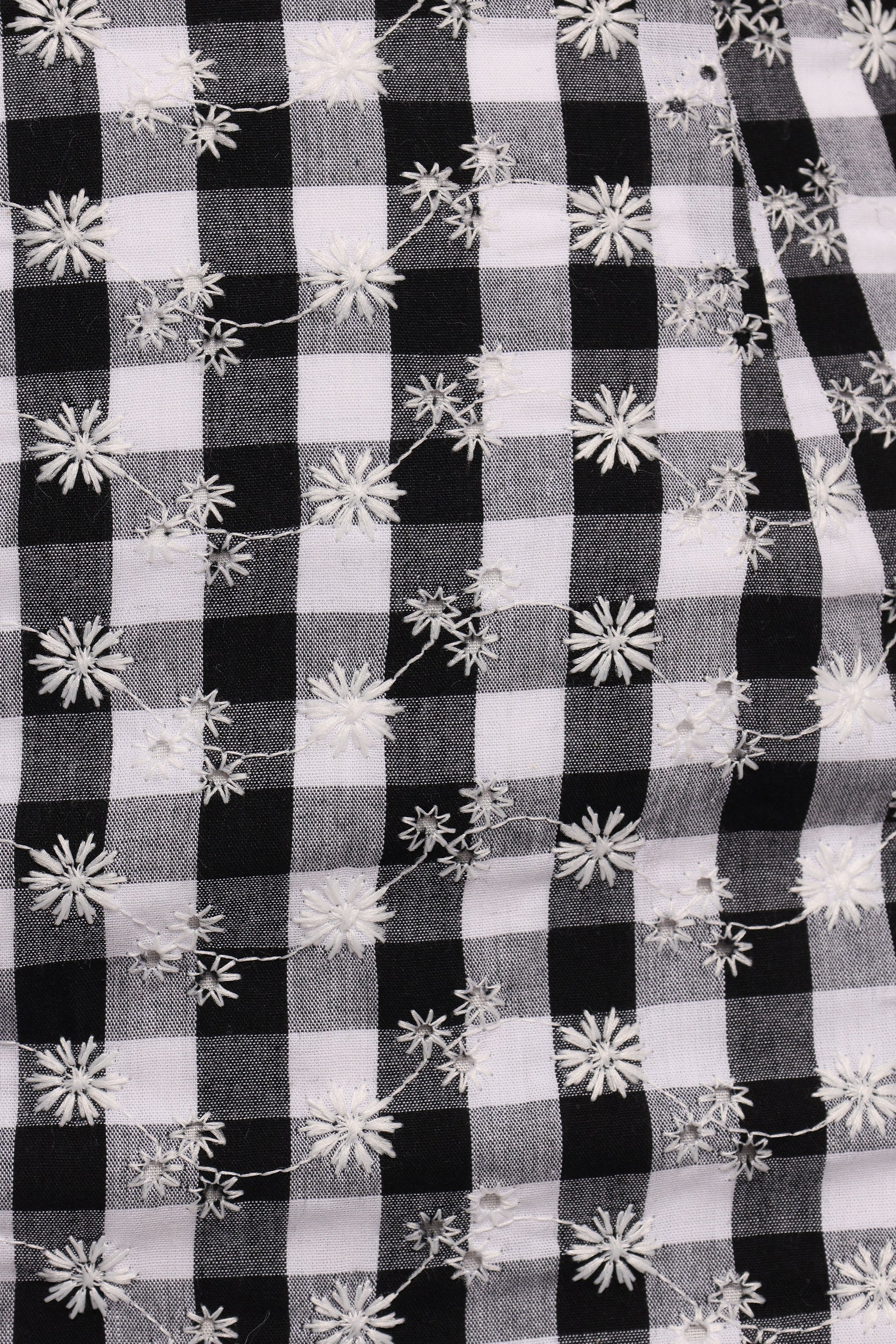 DETAILS Step up your style game with our chic mini skirt, designed to turn heads and keep you feeling fabulous all day long. The playful gingham print gives a nod to classic trends, while the intricate floral embroidery adds a touch of modern elegance.