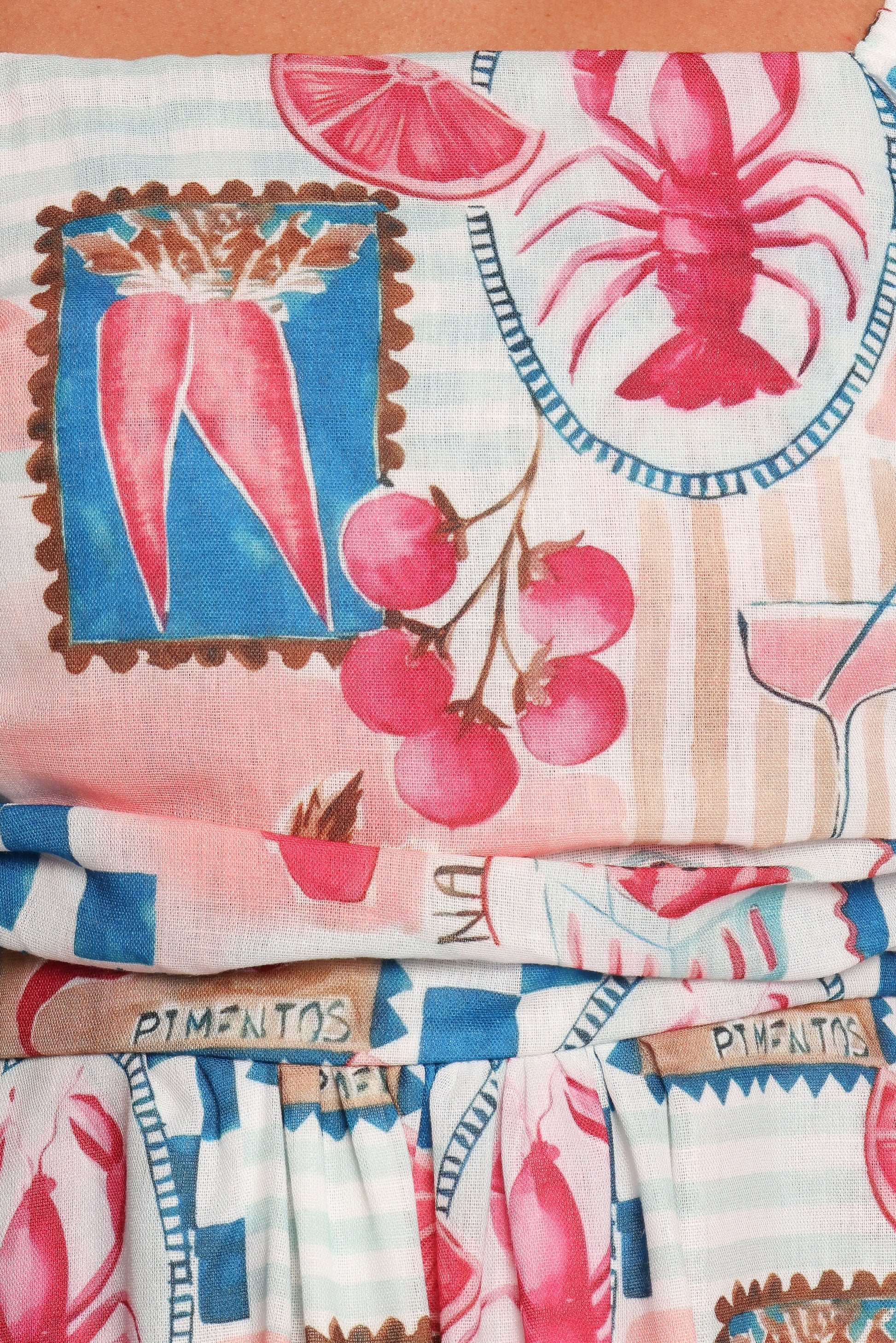 Clo Puff Sleeve Midi Dress - Pink Blue