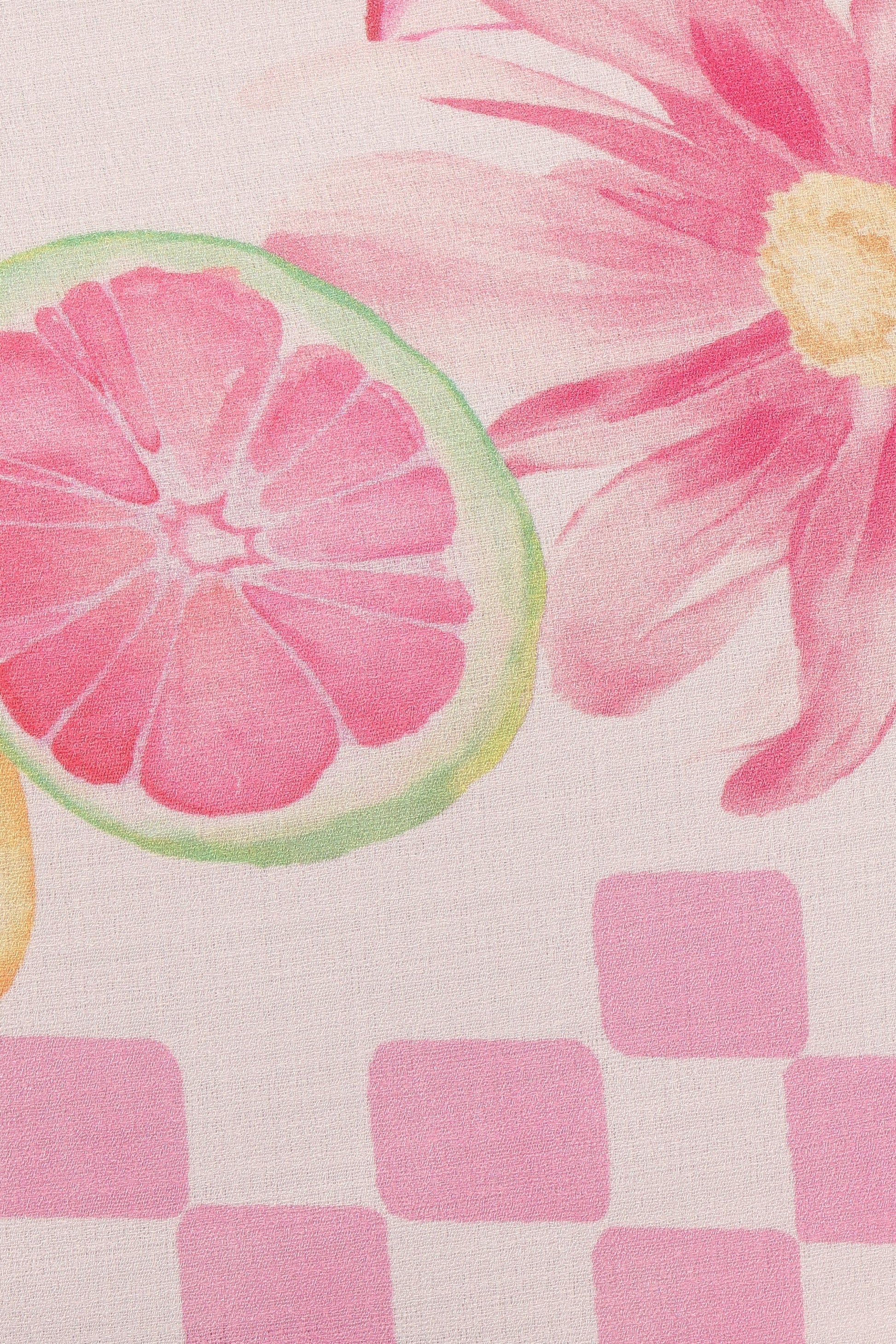 DETAILS This eye-catching dress is designed to turn heads with its playful floral fruit graphic print that adds a burst of color and fun to any occasion. Imagine stepping into a garden party or a summer soiree, radiating confidence and style, knowing you're dressed in a piece that's as unique and vibrant as you are.