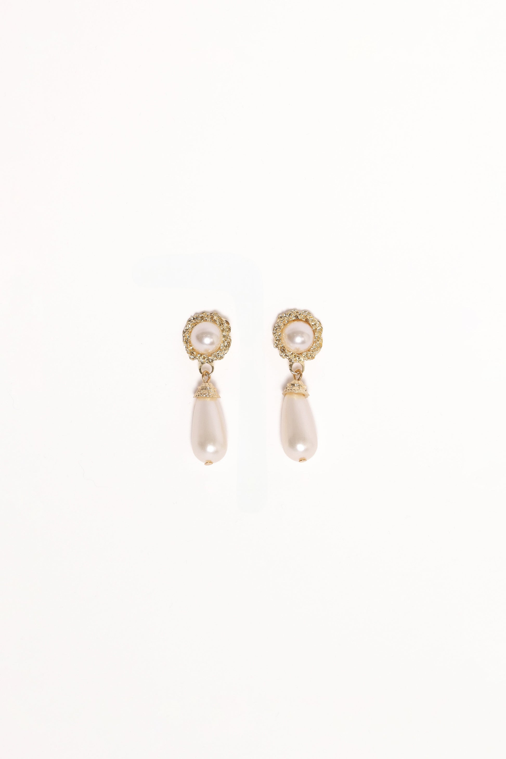 DETAILS Add a touch of elegance to your look with the Estelle Earrings in Gold/Pearl. Featuring a chic drop style design, these earrings combine timeless faux pearl details with sleek gold hardware for a sophisticated finish.