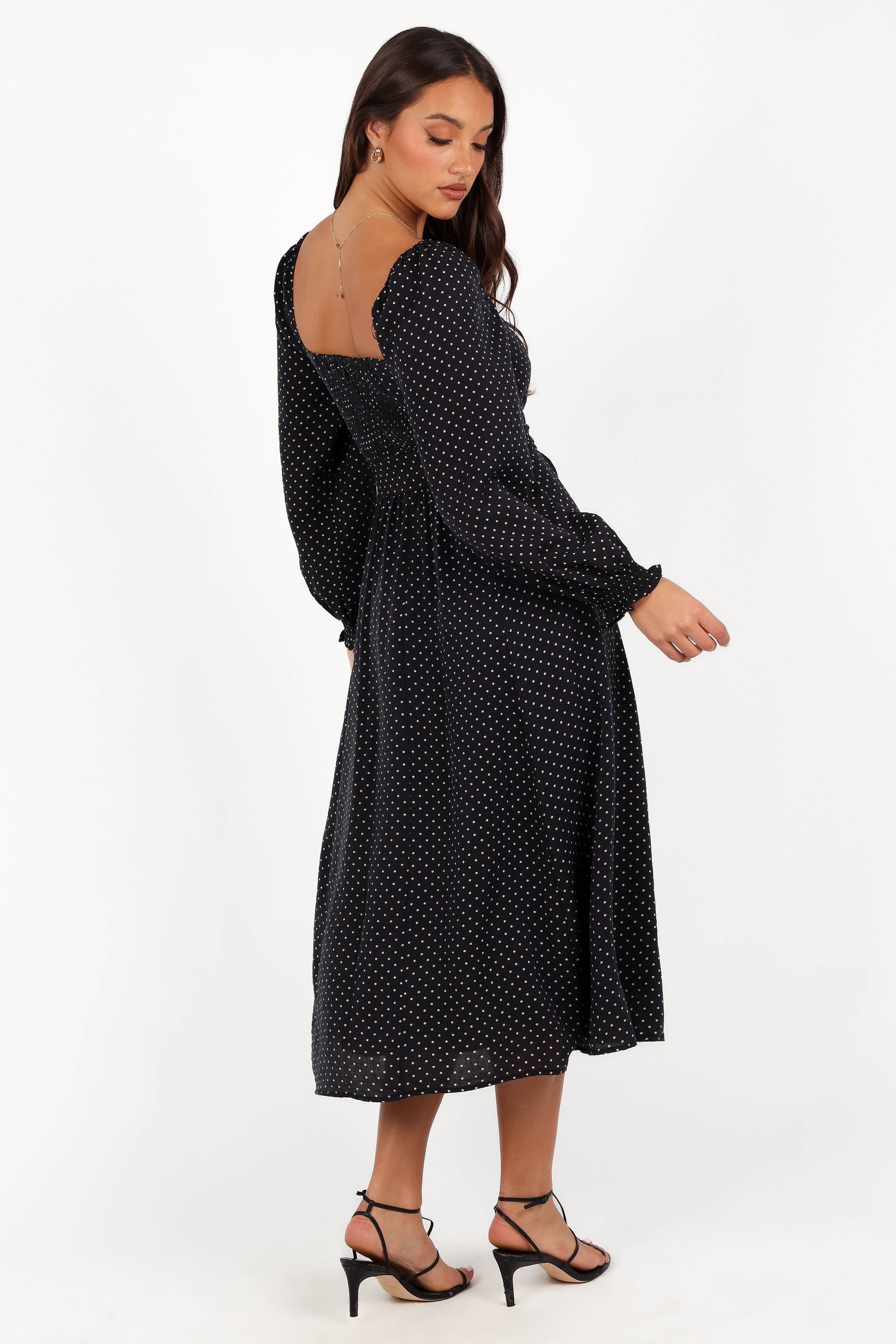 Ettie Long Sleeve Midi Dress - Black Polka Dot