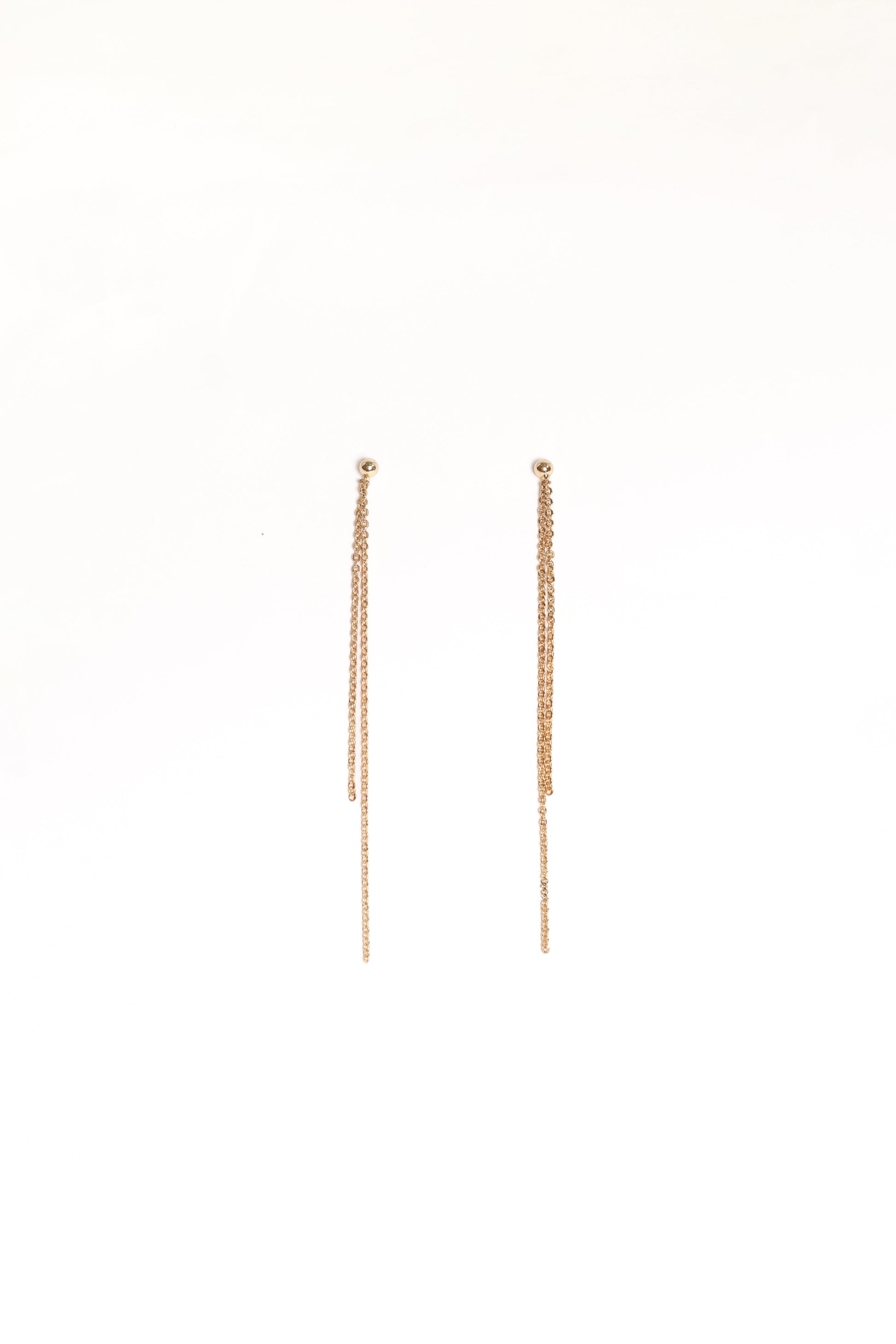 DETAILS Elevate your look with the Genevieve Drop Earrings in Gold, where elegance meets modern design. These stunning earrings feature a delicate gold stud detail that catches the light beautifully, while their fine long drop style adds a touch of sophistication to any outfit.