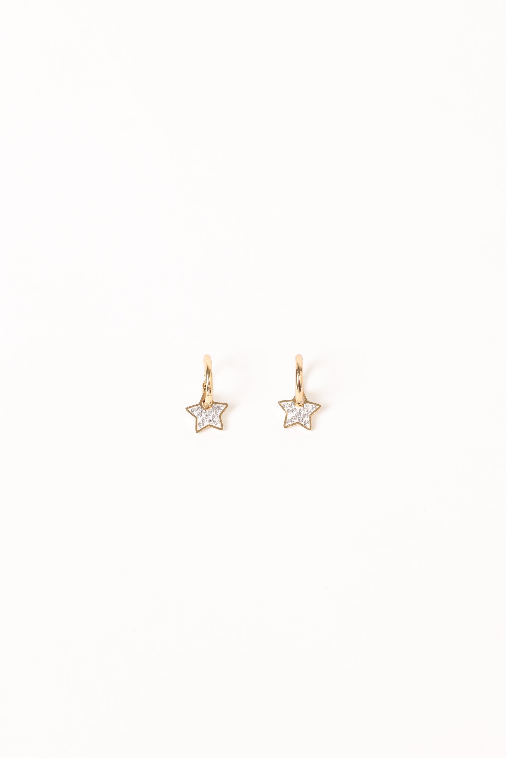 DETAILS Add a touch of celestial charm to your look with the Hayden Star Earrings in Gold. These hoop earrings feature a delicate crystal star drop design that catches the light with every movement, making them perfect for day-to-night styling.