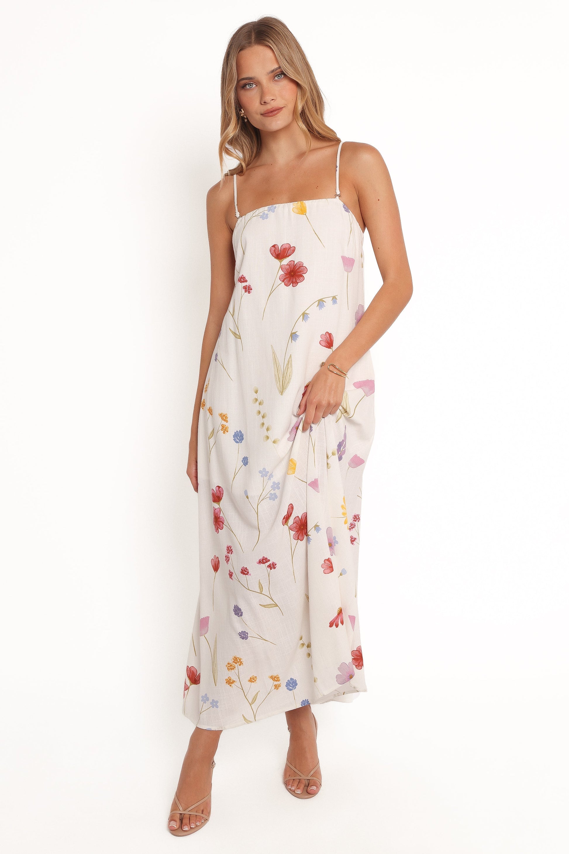 DETAILS This dress features a breezy maxi length and a relaxed fit that's perfect for all-day comfort and style. The elasticised neckline adds a touch of comfort, while the thin adjustable straps and inner bust rubber grip ensure a secure, custom fit.