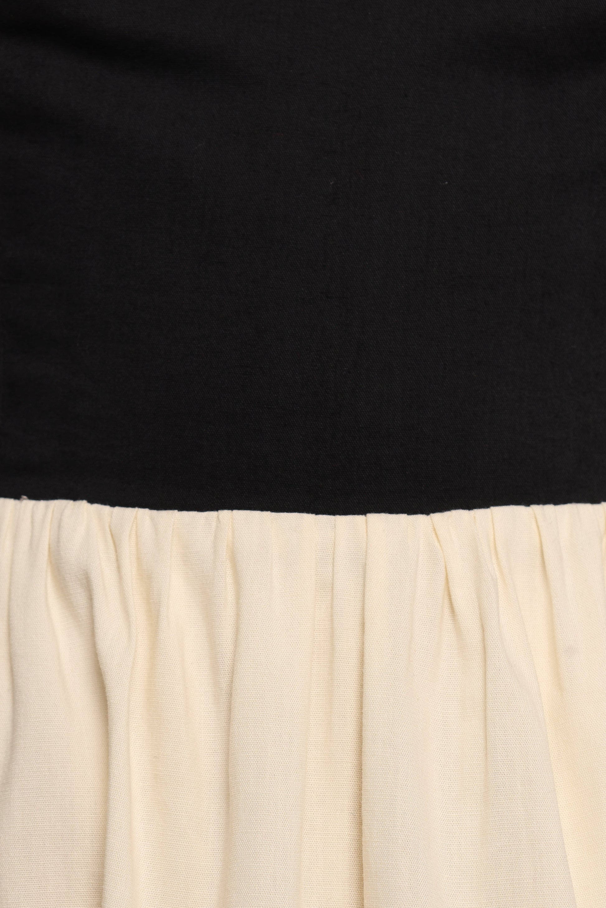 DETAILS This stunning piece combines a modern square neckline with an elasticised halterneck, offering both comfort and style in one graceful design. The cream contrast A-line skirt adds a touch of sophistication that flows beautifully with every step.