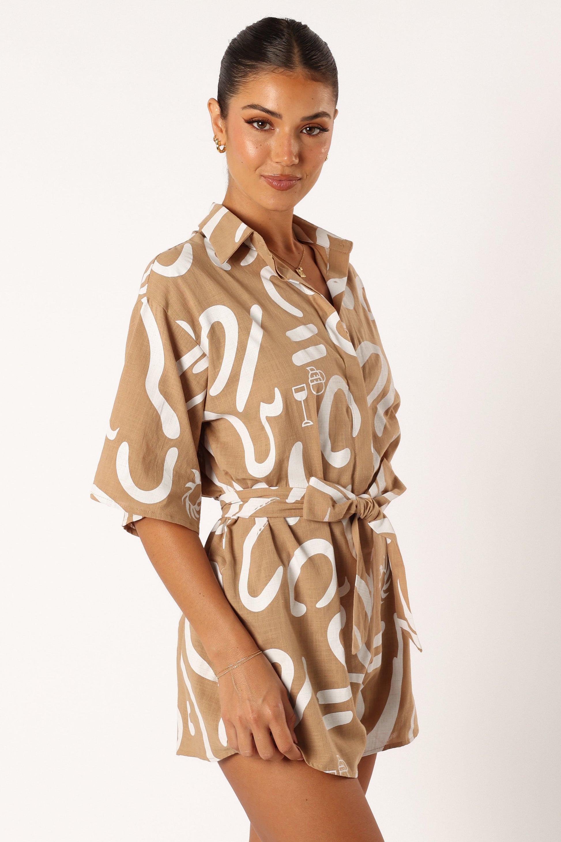 DETAILS Discover the ultimate blend of comfort and style with this stunning, abstract print romper. This chic piece is perfect for a stylish summer, featuring a flattering V-neckline that visually elongates the neck and highlights your collarbone.