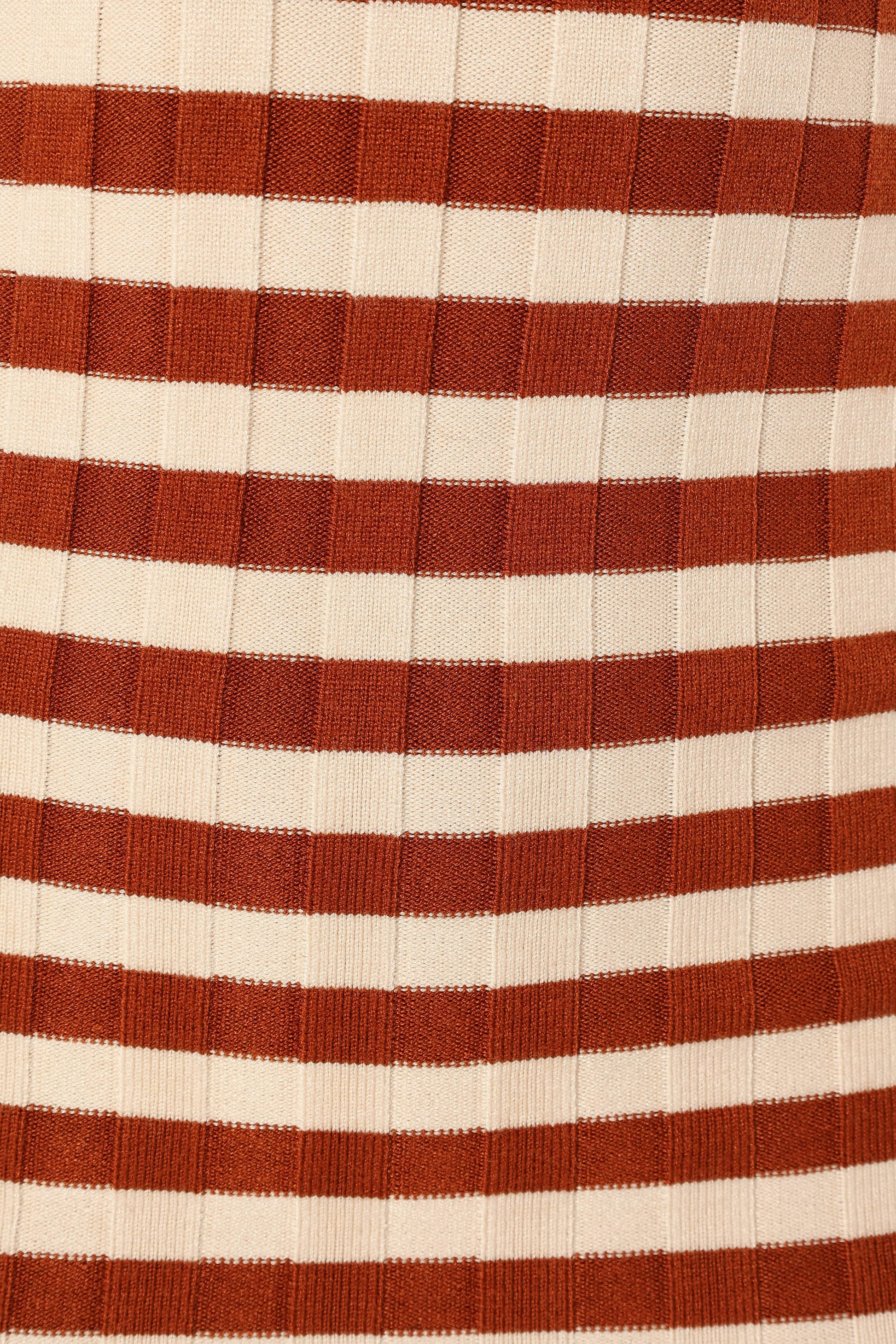 DETAILS If you're looking for an eye-catching dress with a playful vibe, then this midi length square neckline dress is the perfect choice! Featuring non adjustable straps and side split detail, this stretch ribbed knit dress is sure to turn heads. The stripe design adds an unexpected bonus that makes it stand out from the crowd.