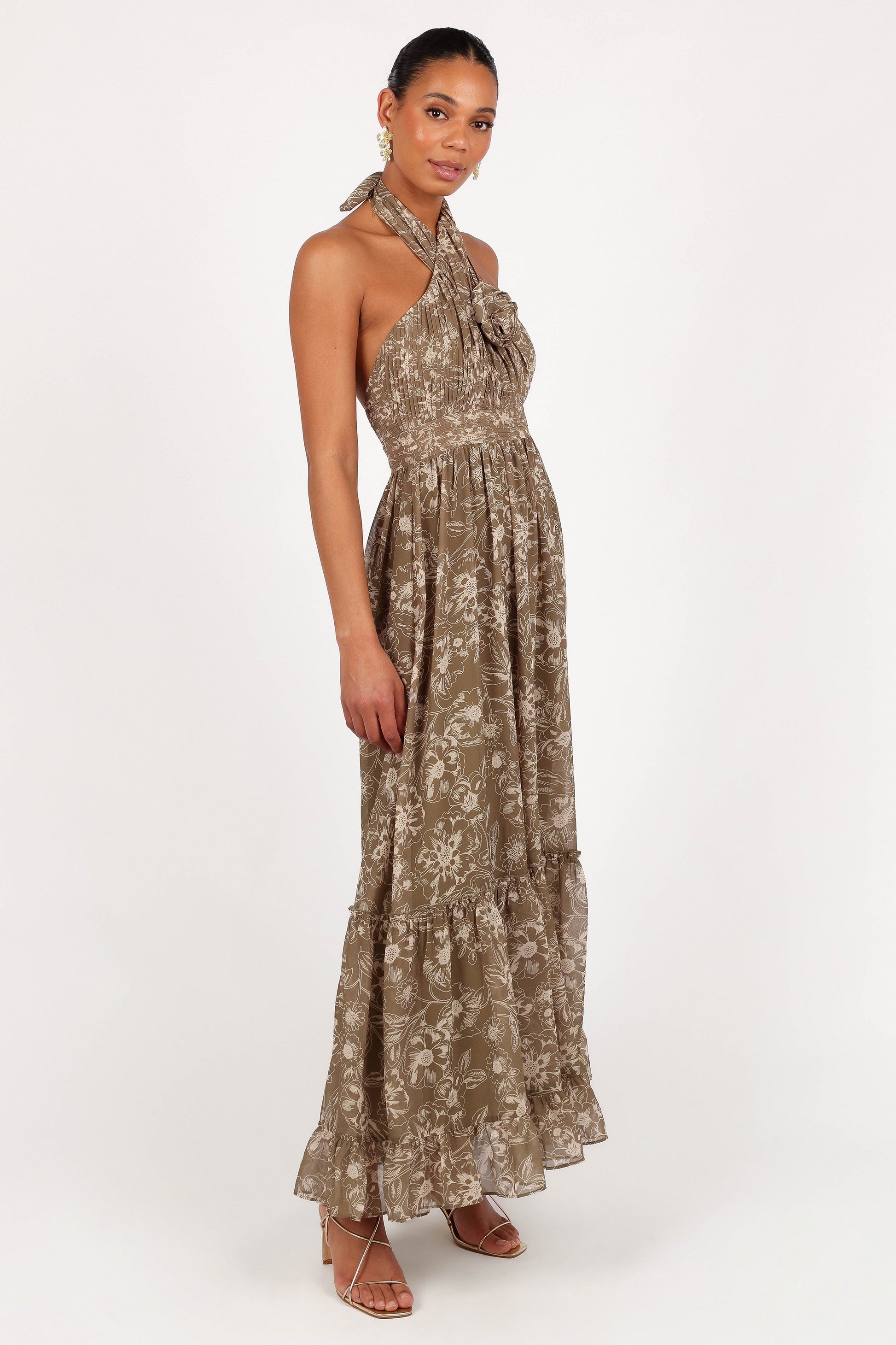 DETAILS Its halter neck, complete with a stylish tie close, gives a flirty nod to the latest trends. The detachable center flower adds an unexpected whimsical twist it's a conversation starter! But wait, there's more. Turn around to reveal a daring open back, adding that extra dose of sass to your style.