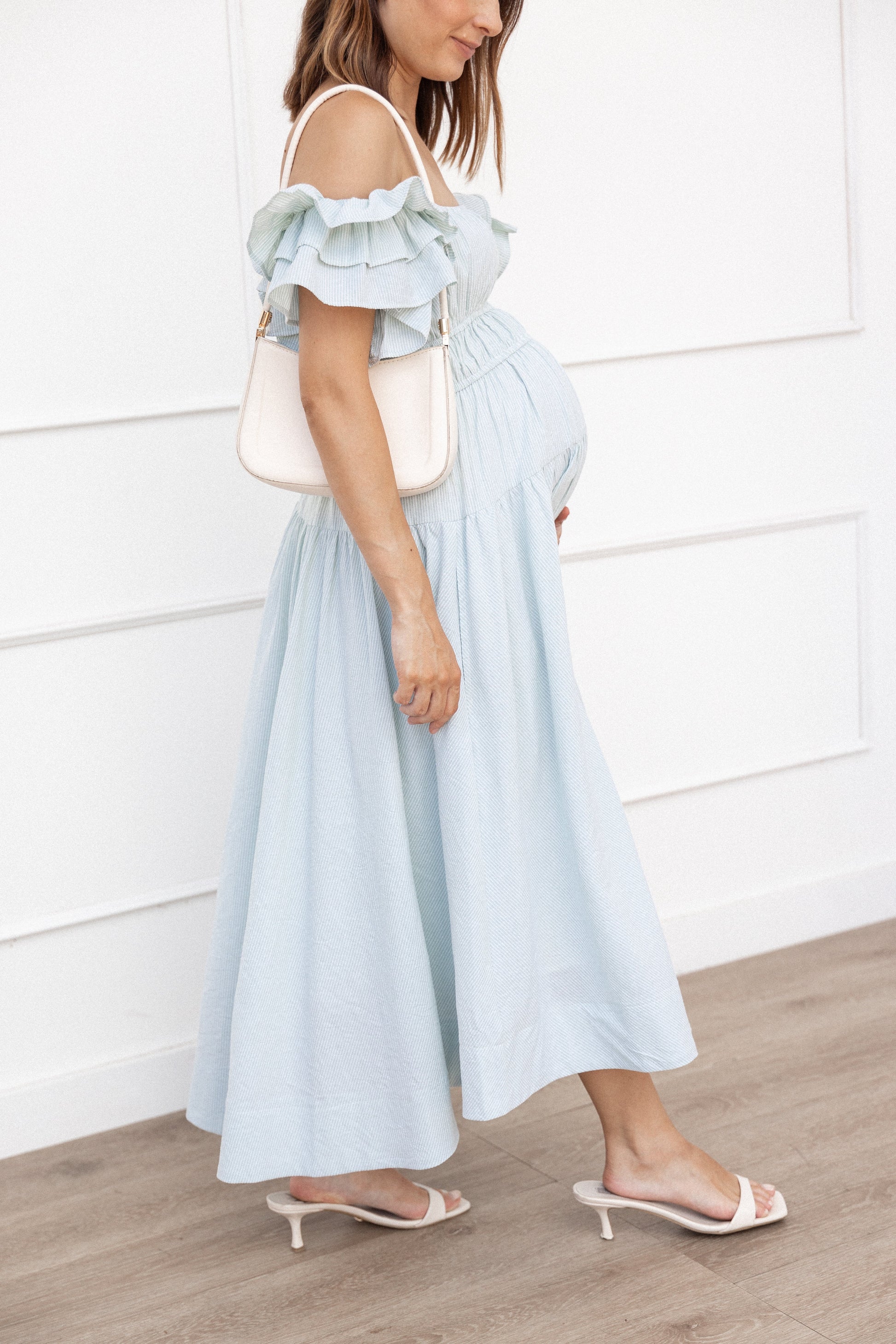 DETAILS This midi length dress is a must-have for the summer season! With a versatile elasticised neckline, elasticised ruffle straps and elasticised waist band, it's comfortable and flattering.