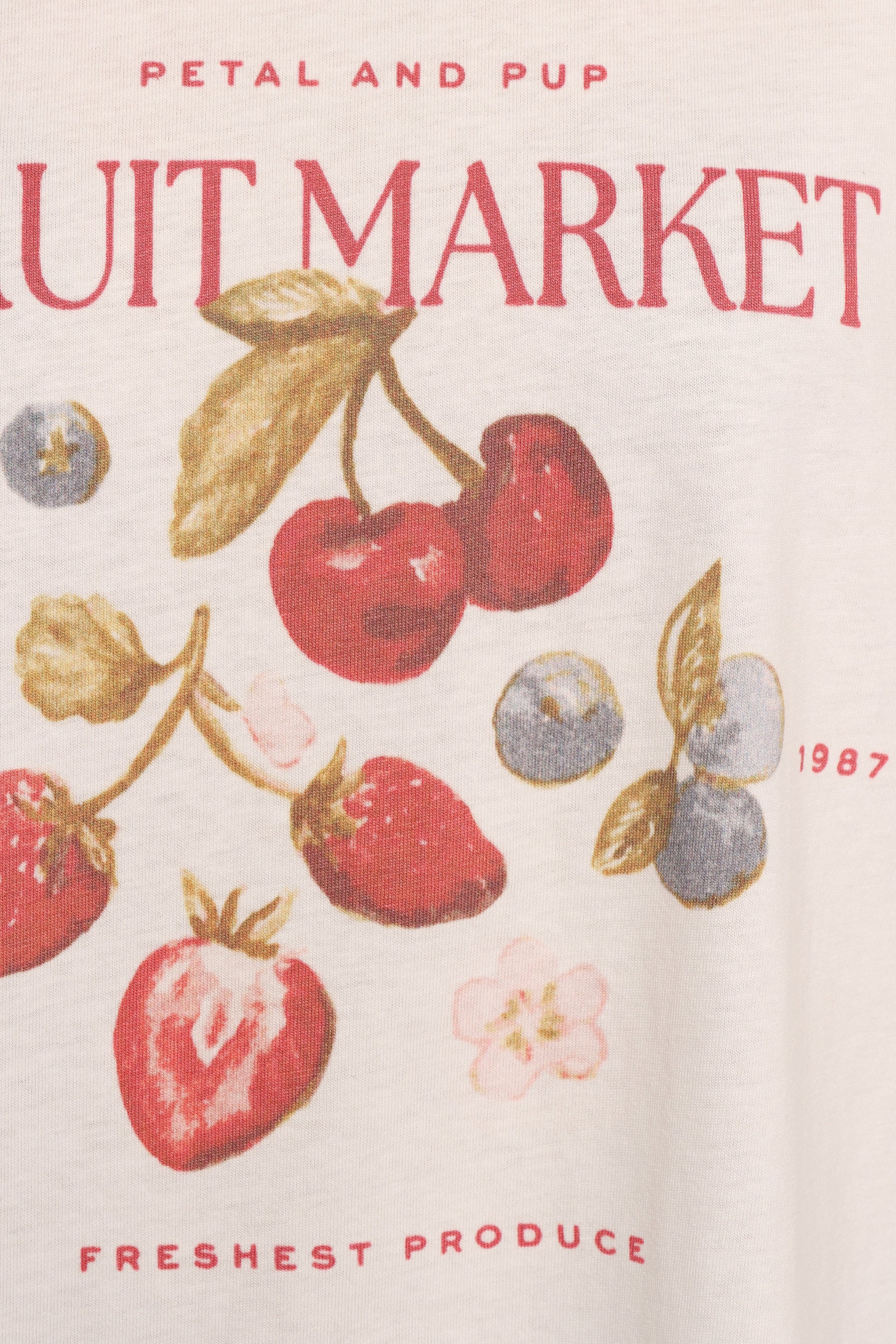 DETAILS This oversized tee combines comfort and style with its round neckline and short sleeves, creating an effortlessly chic look for any casual outing. The playful fruit graphic adds a pop of fun to your wardrobe, ensuring you stand out in the crowd while staying on-trend.