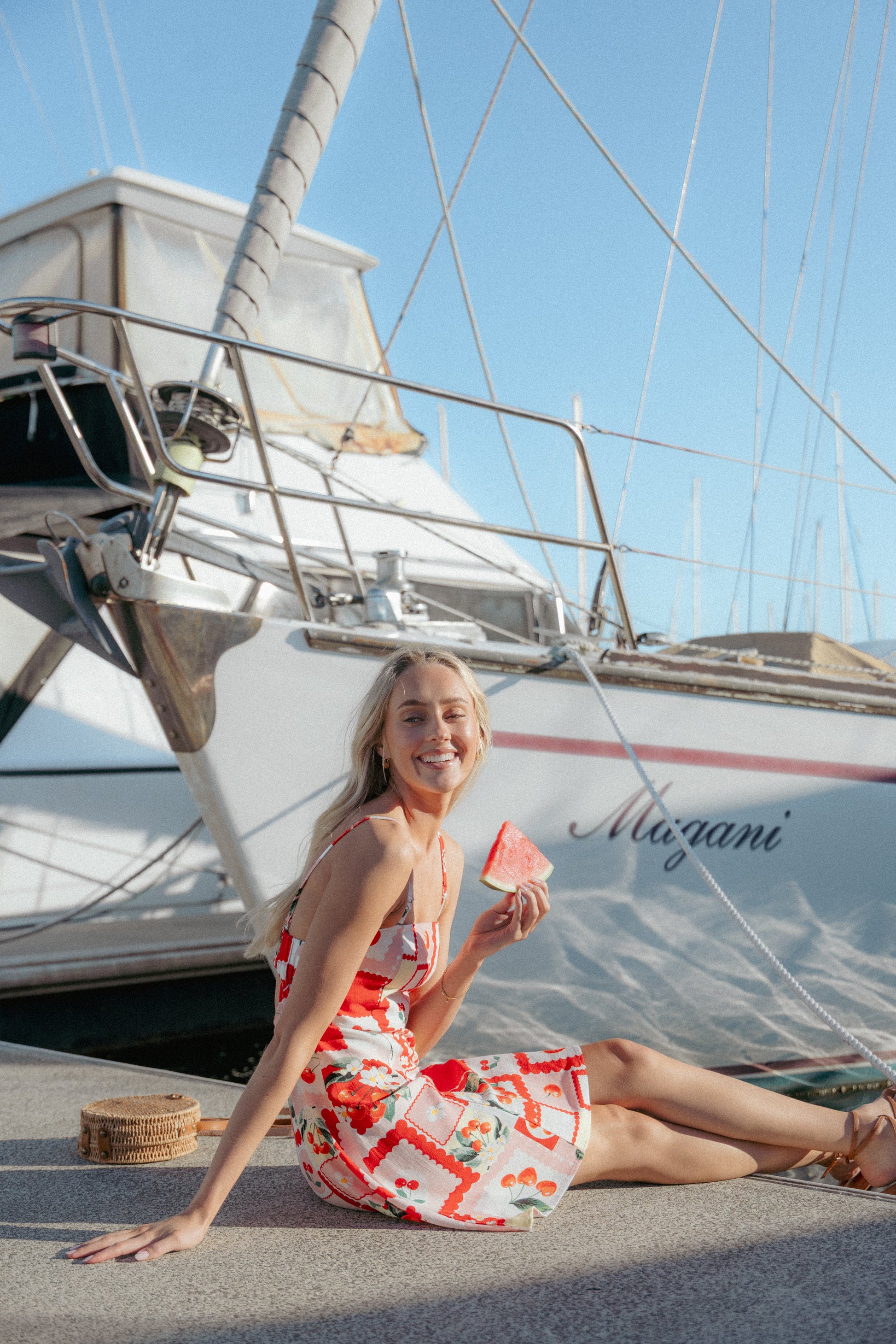 DETAILS Make a statement this season with the Almudena Midi Dress in vibrant cherry red. Featuring a fun fruit cherry print, this eye-catching dress perfectly balances playful charm with effortless elegance.
