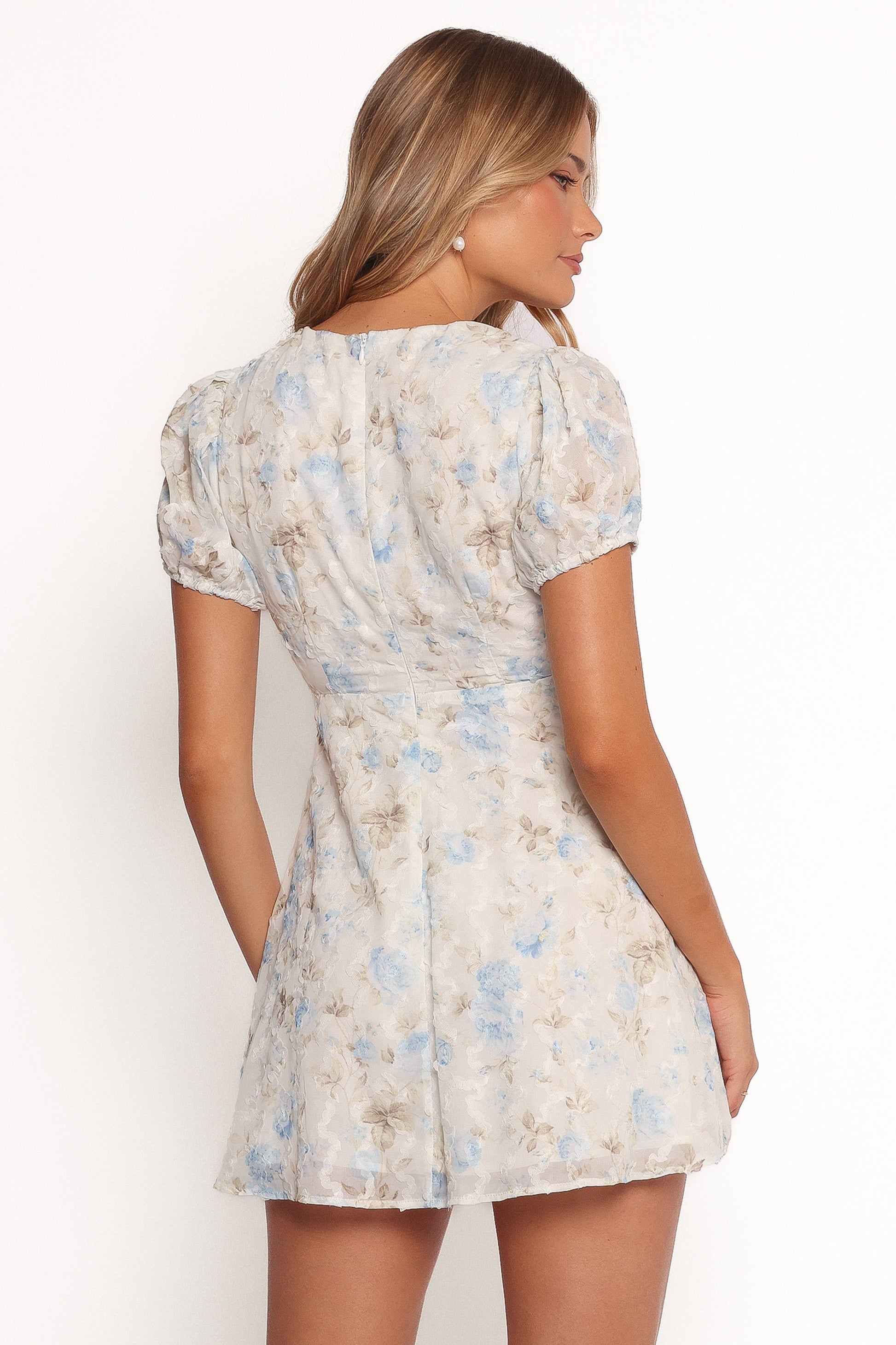 DETAILS Step into summer elegance with the Marisol Mini Dress in Cream Blue Floral. This effortlessly chic piece features a flattering mini length and delicate v neckline, perfect for daytime outings or sunset strolls.