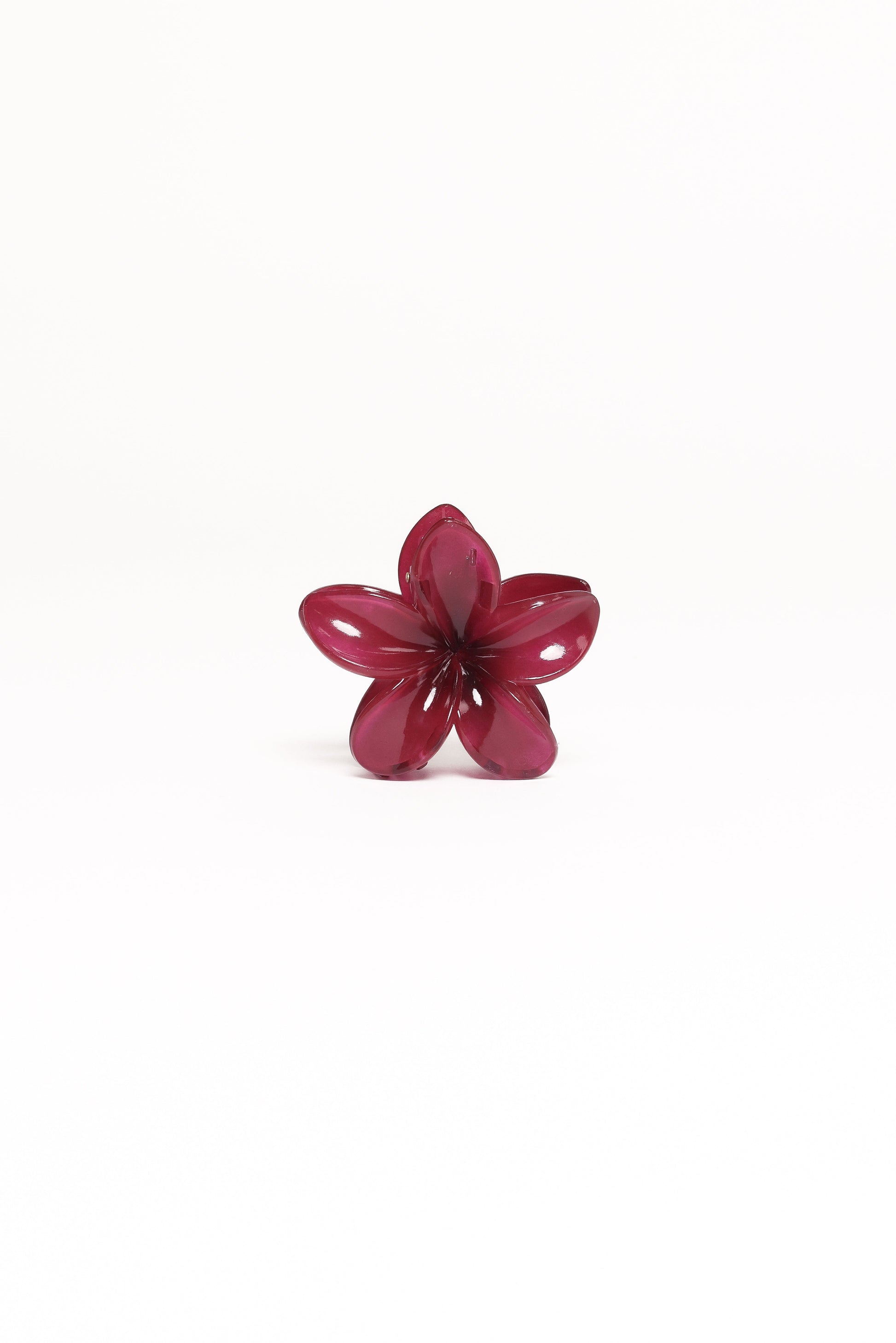 DETAILS Add a touch of elegance to your updo with the Marissa Flower Hair Clip in a stunning wine color. Designed in a chic frangipani style with a sturdy claw grip, it holds your hair effortlessly while making a bold fashion statement. Perfect for that polished look, day or night!