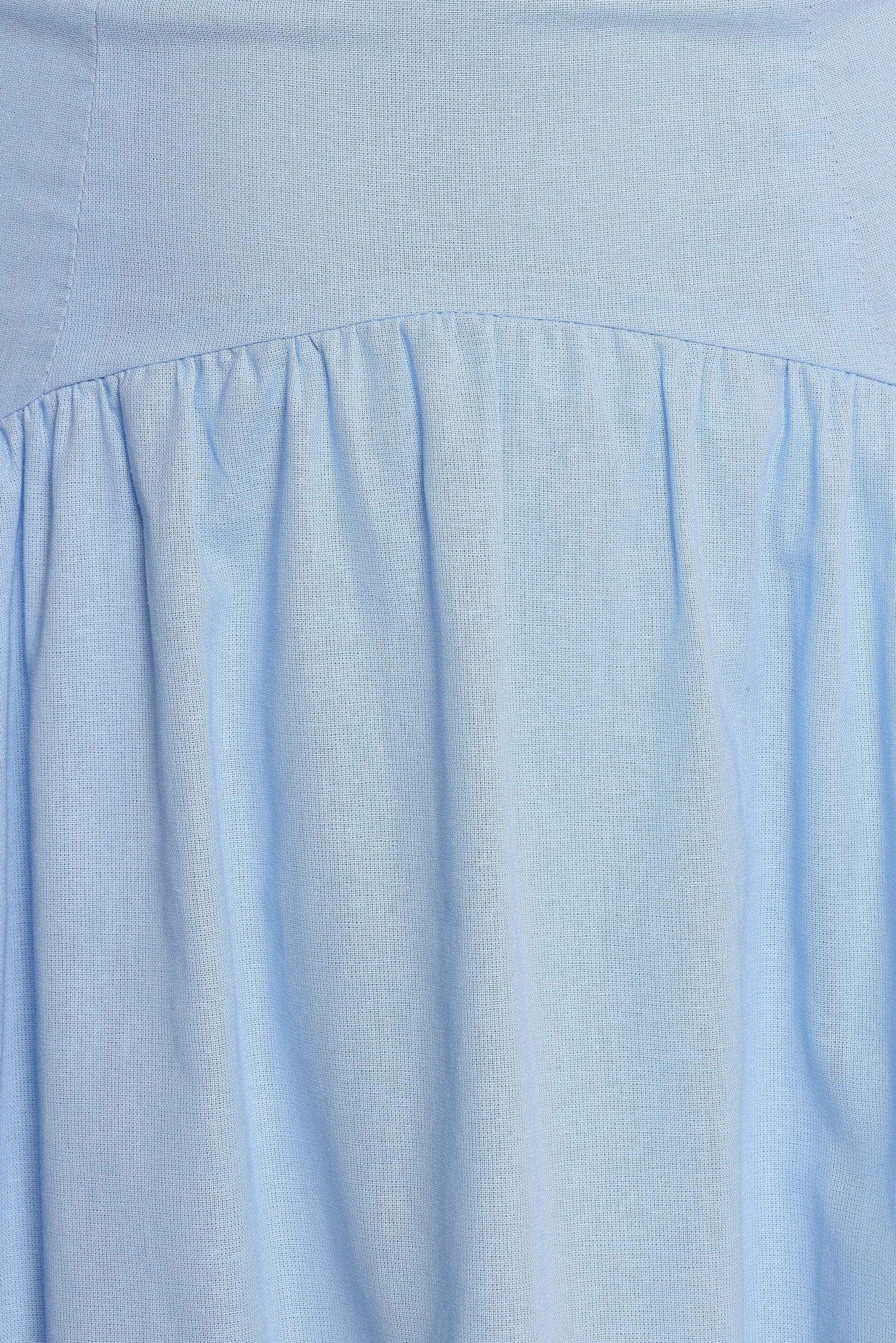 DETAILS Elevate your wardrobe with the Maude Maxi Dress in Blue, a striking blend of elegance and edge. Featuring a flowing maxi length for effortless movement, a chic side tie-up detail that cinches to perfection, and bodice boning for a structured fit, it's your go-to for making a statement.