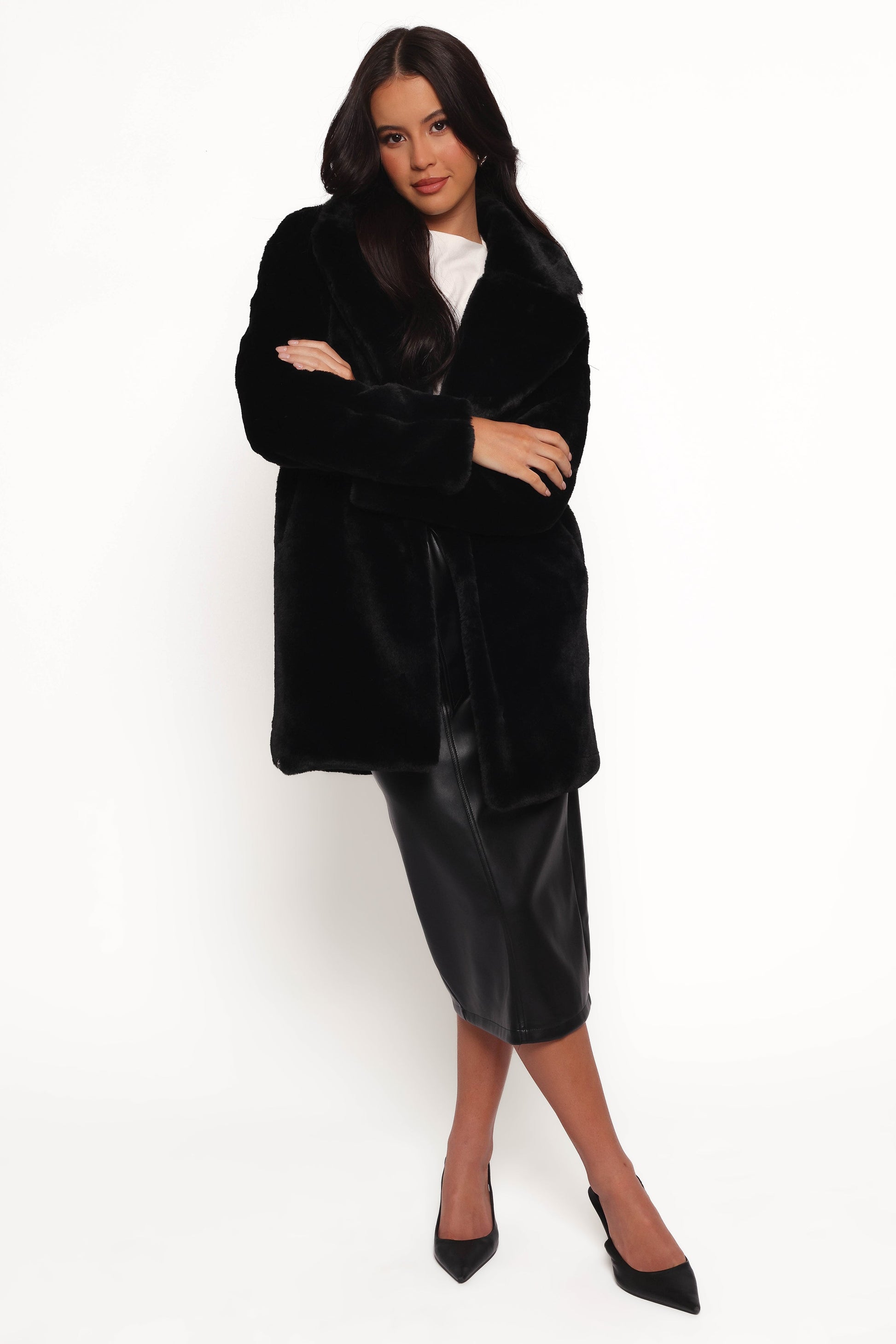 DETAILS Wrap yourself in effortless style and cozy comfort with the Meeka Faux Fur Jacket. This long-lined coat, crafted from luxuriously soft faux fur, promises to be your go-to statement piece for chilly days. Its spread collar and long sleeves give a classic silhouette a modern twist, perfect for layering over your favourite outfits.
