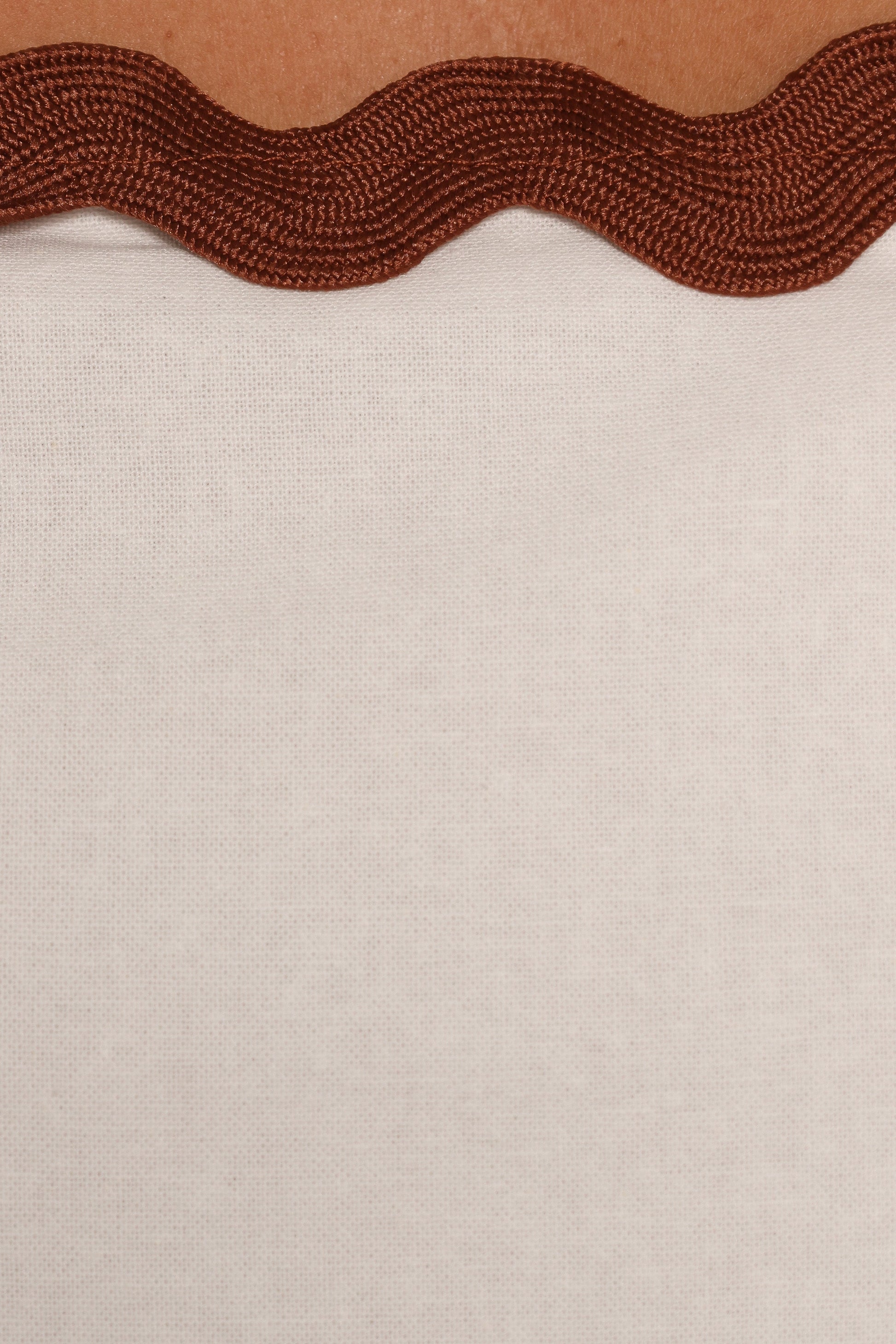 DETAILS This beautiful top features an eye-catching ric rac design and a flattering scalloped square neckline. The relaxed fit features, thin adjustable straps, and a invisible back zip with hook and clasp, it creates a comfortable yet stylish look that you can easily dress up or down.