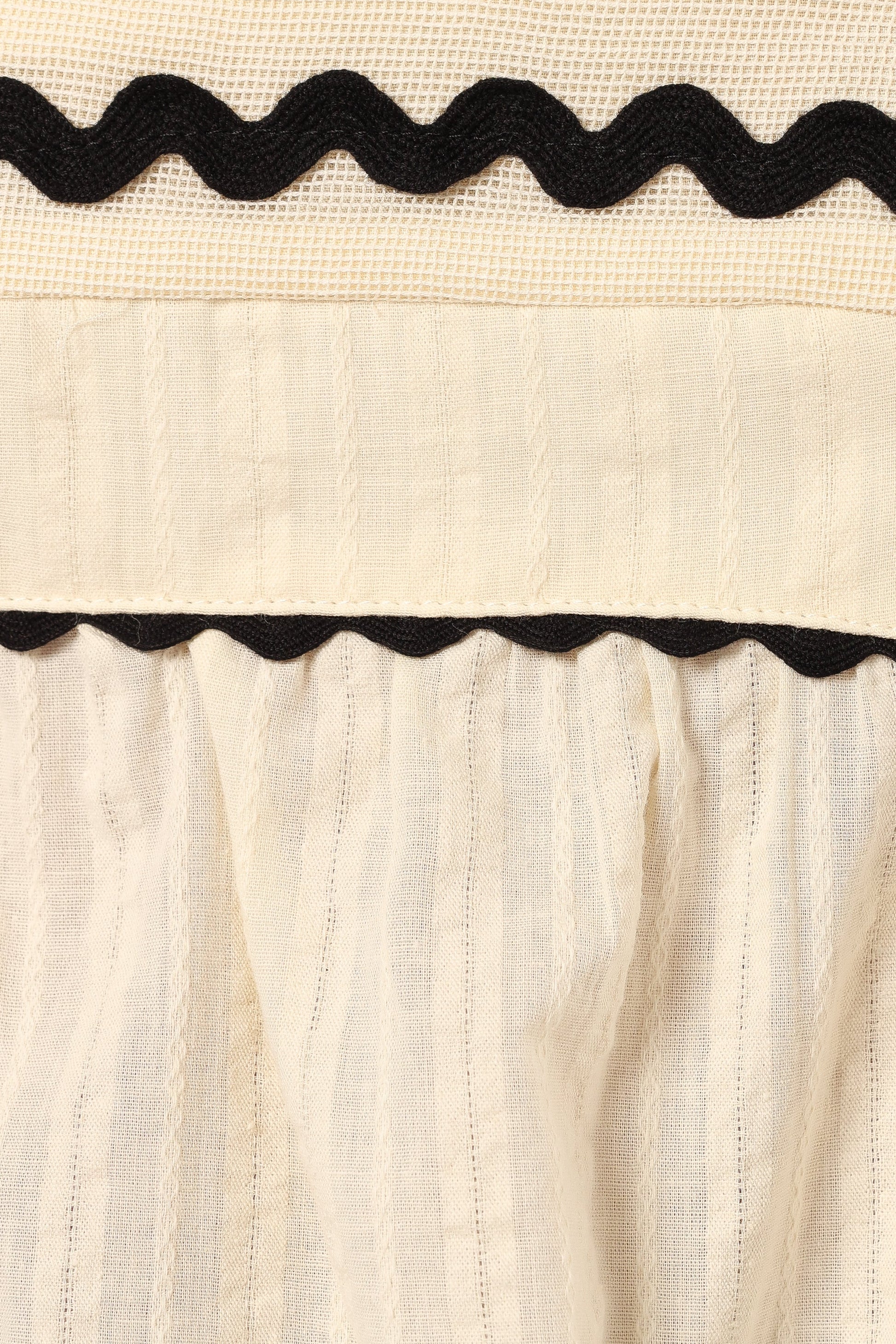 DETAILS This top boasts a straight neckline and adjustable tie close straps for a chic, effortless fit. The playful ric rac design and back shirred panel creates a comfortable yet stylish look that you can easily dress up or down.