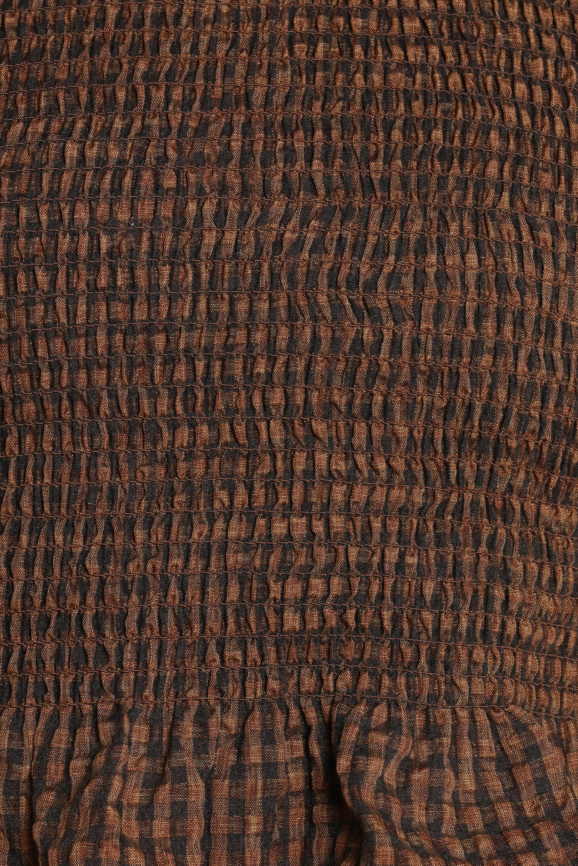 DETAILS The Nora Long Sleeve Top - Check is your new wardrobe staple that effortlessly combines style and comfort. This cropped-length top features a chic high neckline and long, elasticized sleeves that lend just the right amount of drama while ensuring a perfect fit.