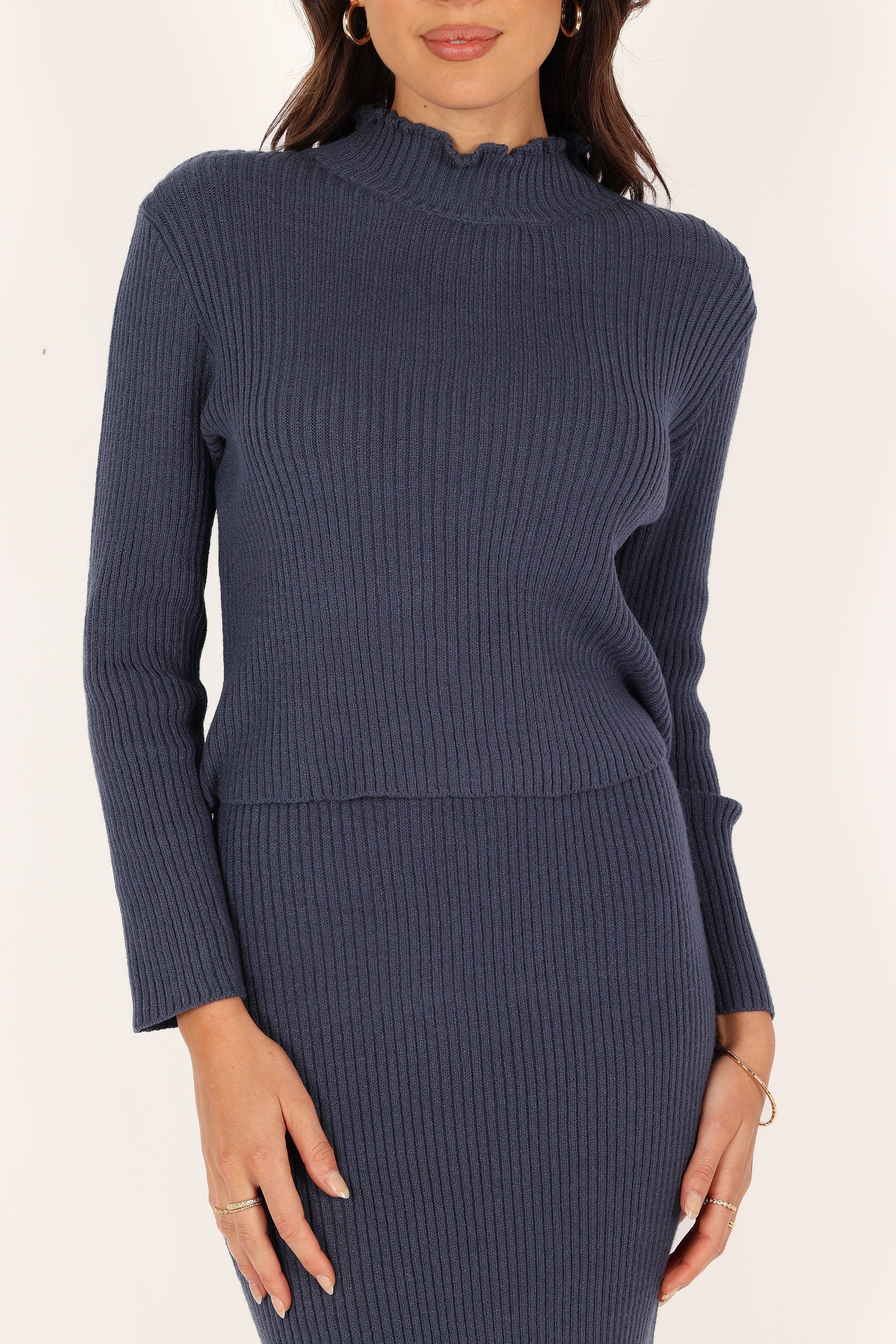 DETAILS full-length knit top features a round high neck with a lettuce hem and long sleeves for a classic silhouette. However you choose to wear it, we know you???ll look gorgeous two piece set!