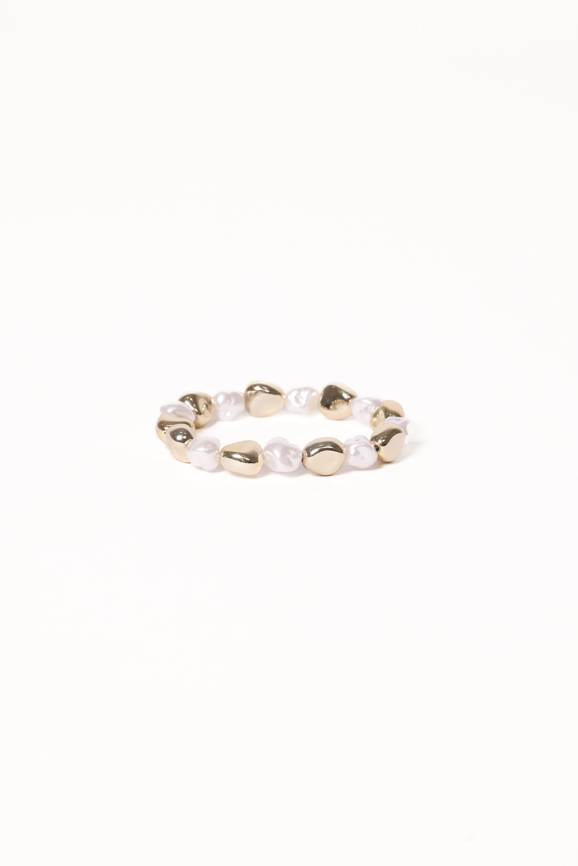 DETAILS Elevate your accessory game with the Phoenix Bracelet in Gold Pearl. Featuring stunning faux pearl accents and molten gold-tone beads, this piece combines timeless elegance with a modern, artistic edge.