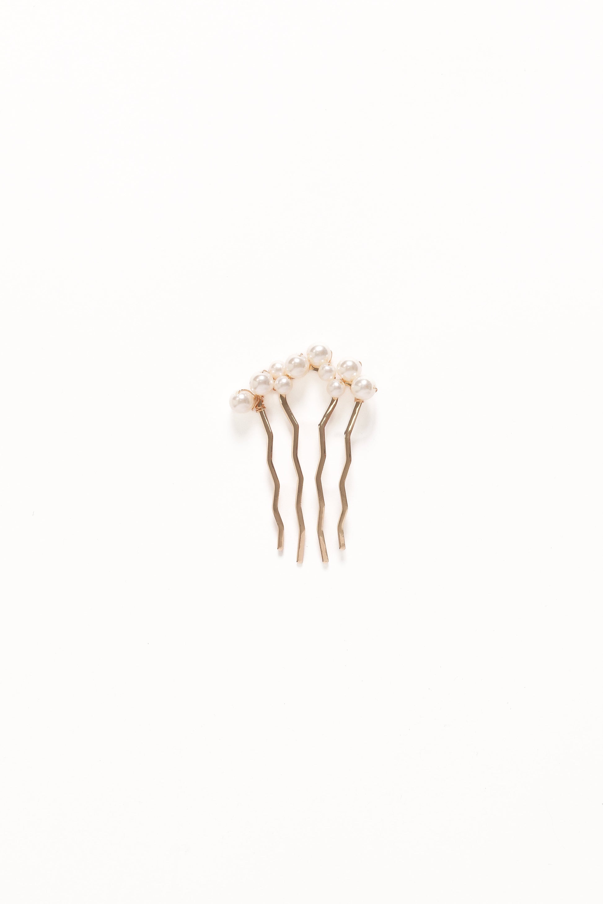 DETAILS Add a touch of timeless elegance to any hairstyle with the Rosalie Hair Pin - Pearl. Featuring a stunning faux pearl design set on sleek gold hardware, this hair pin combines classic charm with modern sophistication.