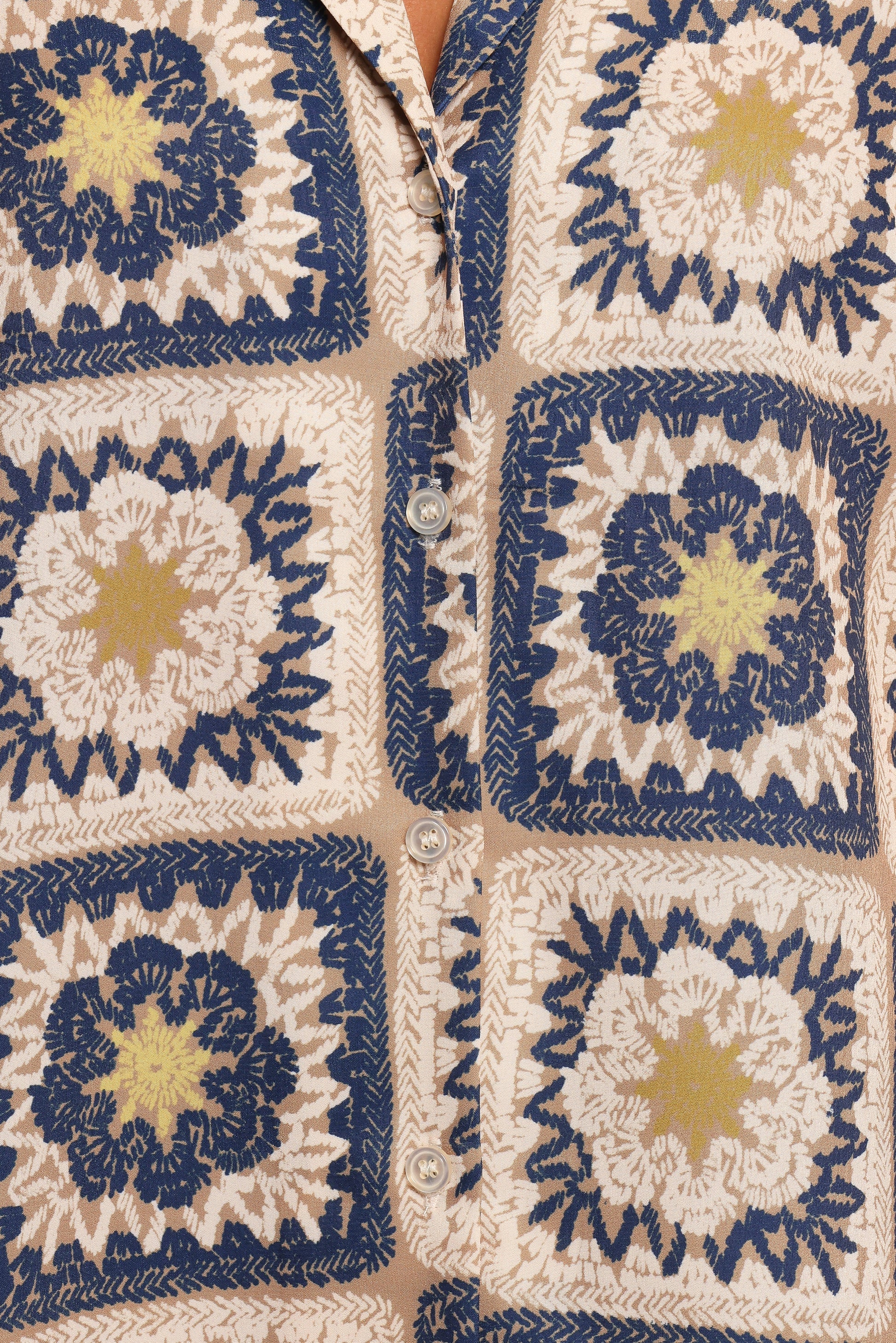 DETAILS Elevate your everyday wardrobe with the Rowena Shirt in our signature Rowena Print, a perfect blend of effortless style and versatility. Featuring a chic spread collar and a V neckline that frames the face beautifully, this shirt is designed with long sleeves for year-round wear.