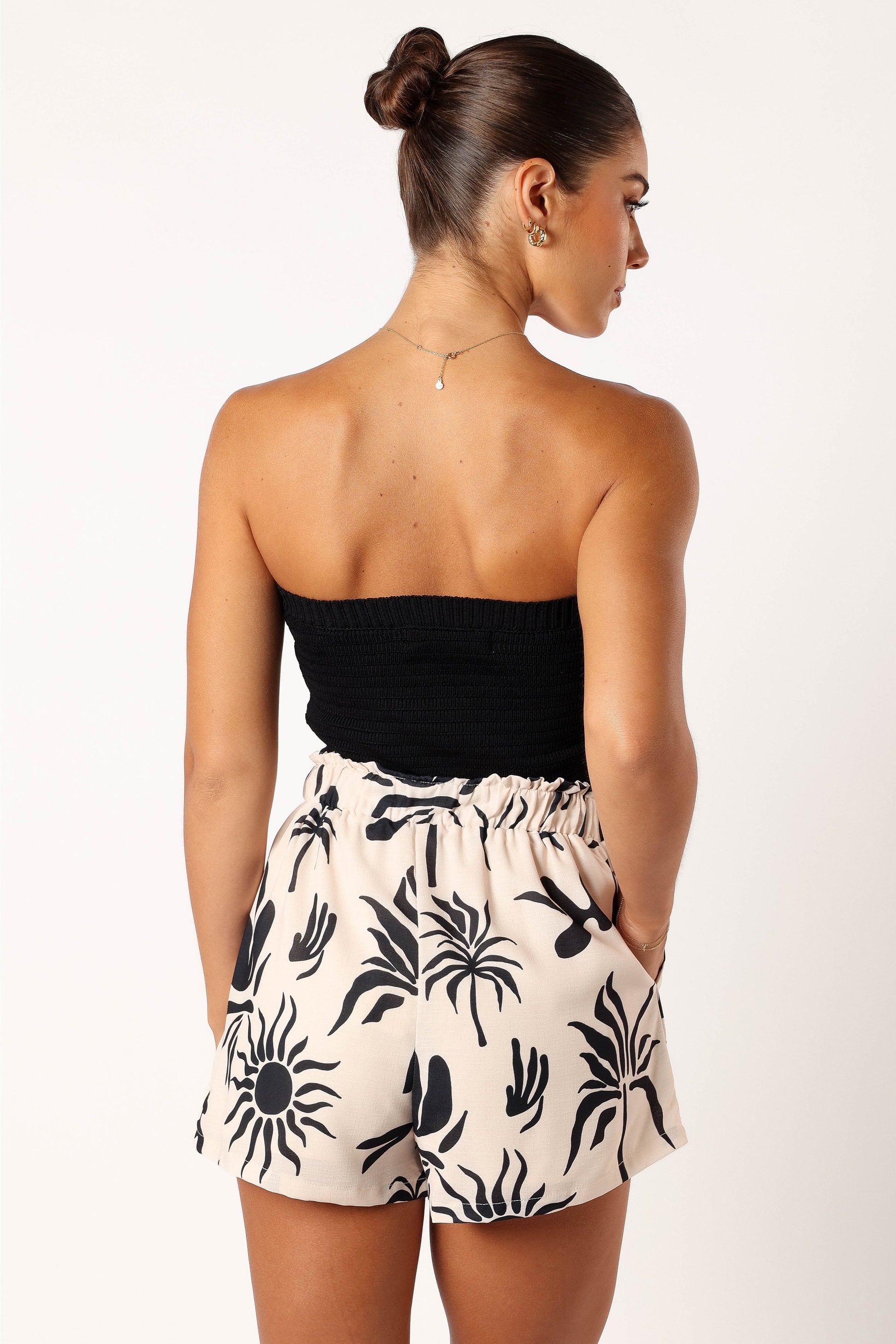 DETAILS Are you ready to show off your summer style? If so, these beige and black abstract print high waisted shorts with an elasticised waistband and functional pockets are just what you need! They're the perfect combination of fashion and function.
