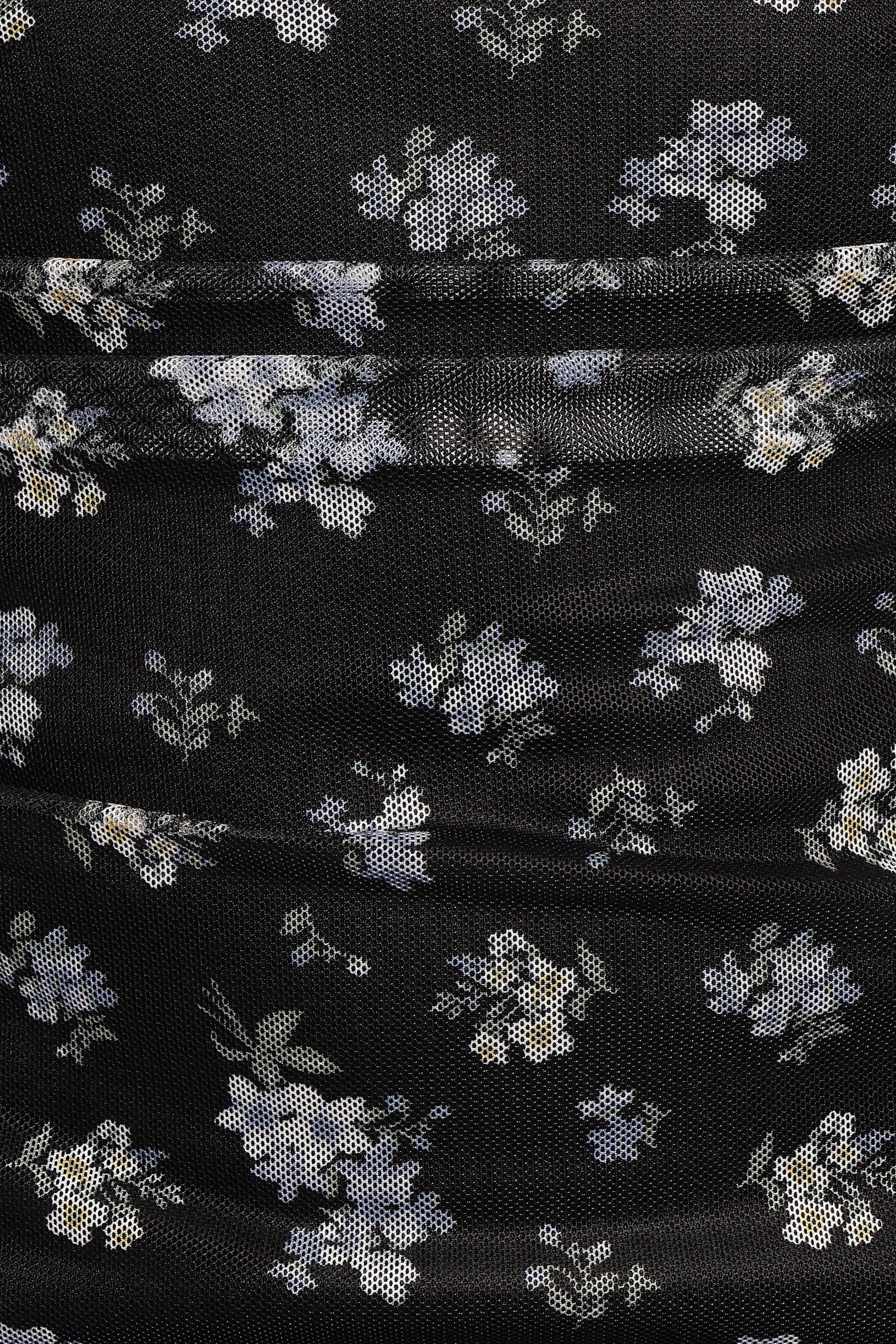 DETAILS This stunning piece combines a classic round neckline and sleeveless design, making it perfect for warm days or layered looks. The gathered side details and ruffle hemline add just the right amount of movement, while the black floral print offers a versatile and timeless aesthetic.