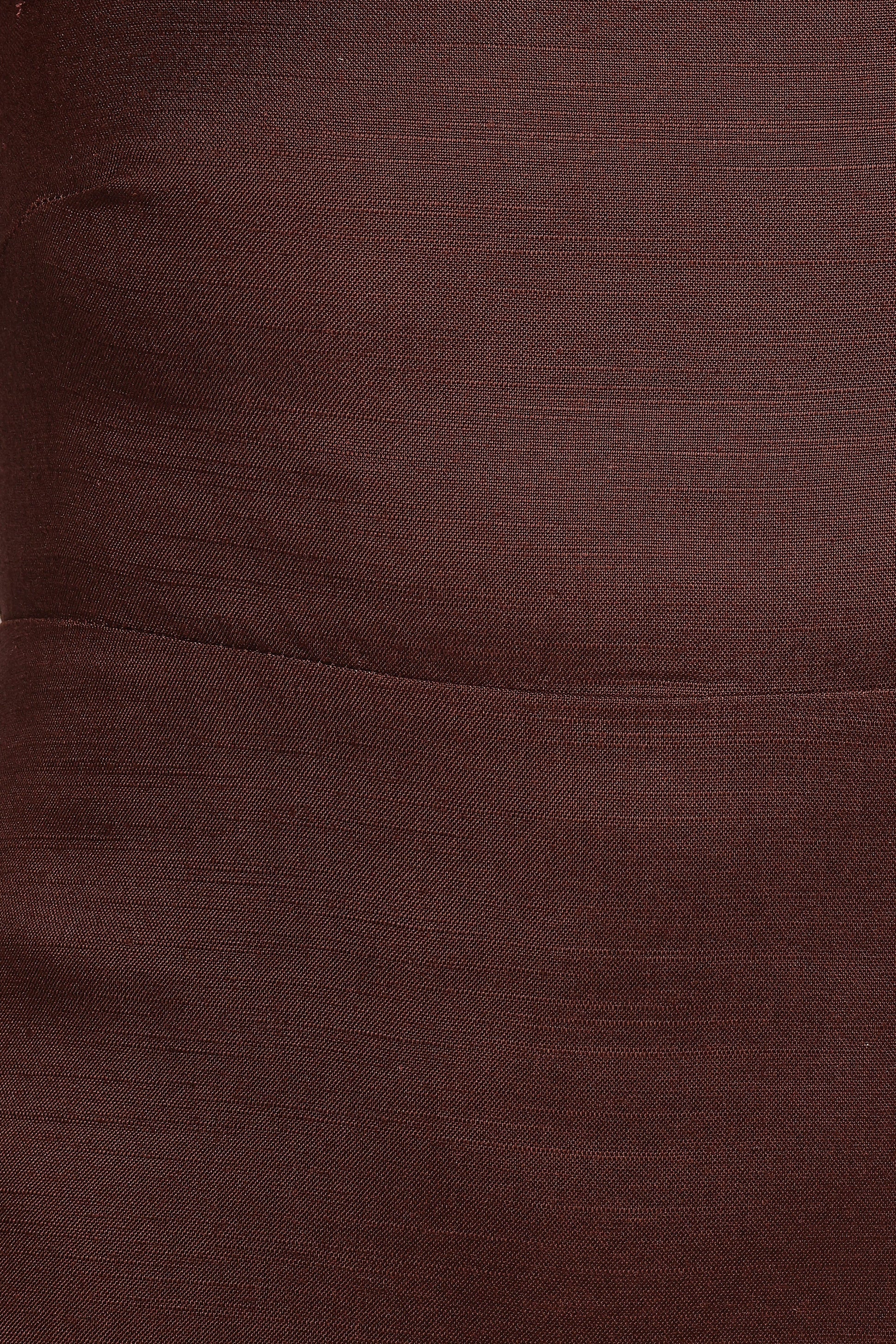 DETAILS Elevate your wardrobe with the effortlessly chic Skylar Midi Dress in a warm brown hue. Designed with a flattering midi length, it features a statement square scallop neckline that adds a touch of modern elegance.