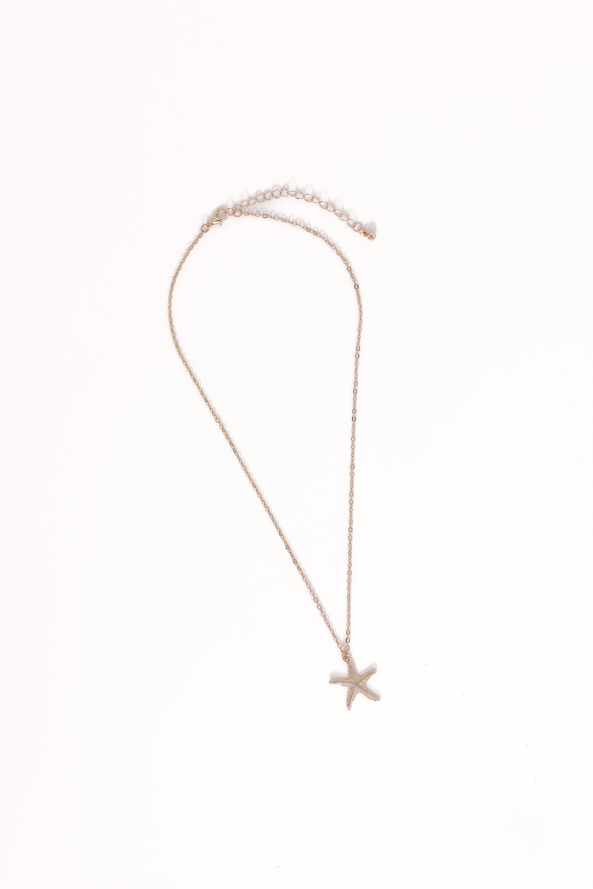 DETAILS Add a touch of seaside charm to your look with the Starfish Necklace in Gold. Featuring a delicately crafted starfish pendant on a sleek gold link chain, this piece brings effortless elegance to any outfit.