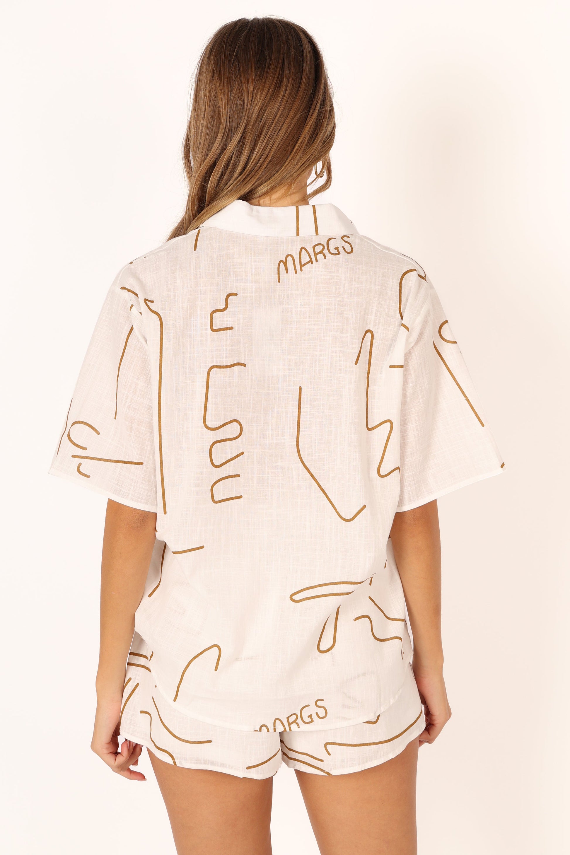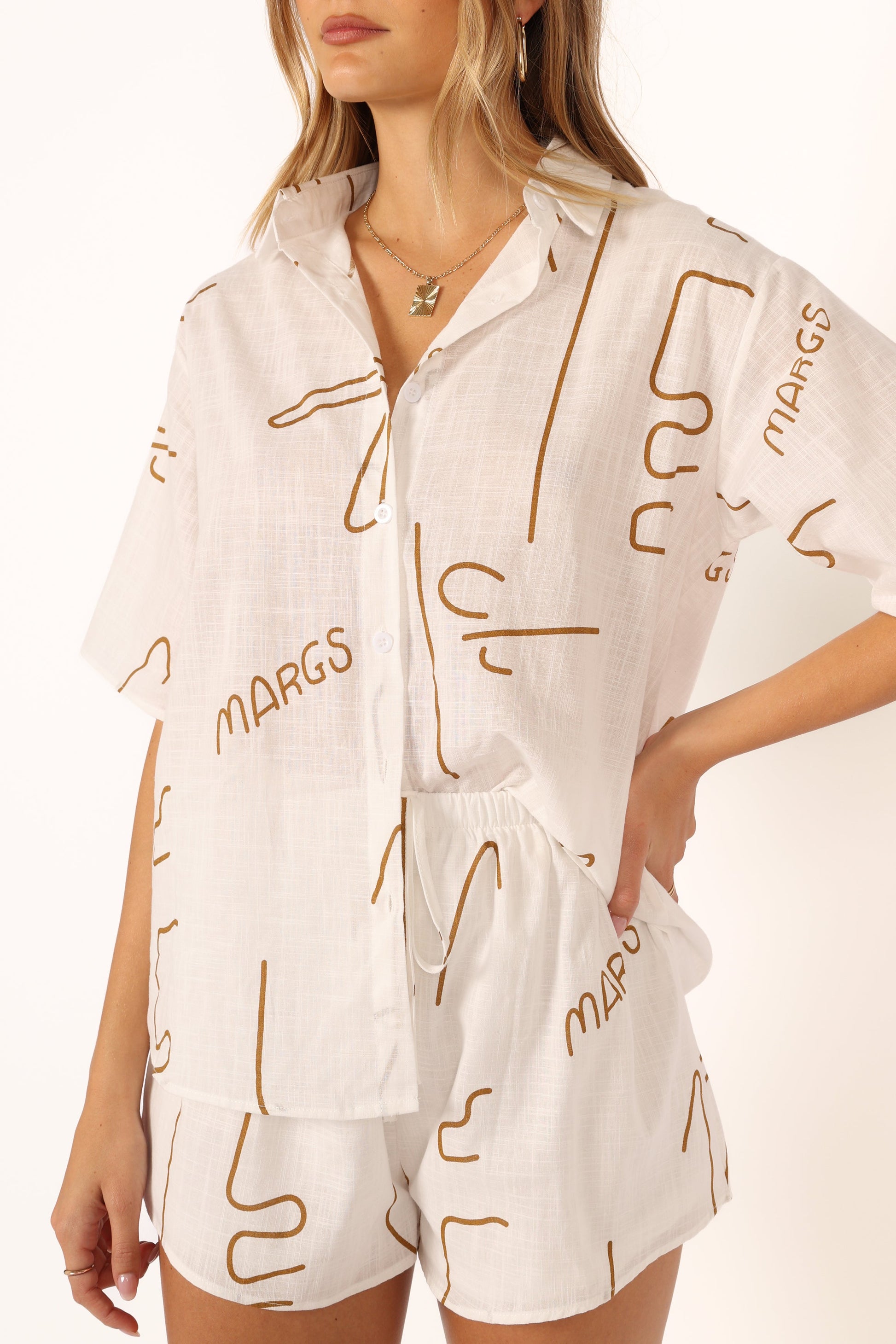 DETAILS Say hello to summer with this fun and flirty top and shorts set! This two-piece ensemble features a spread collar, V neckline, short sleeves, and front functional button close. The high waisted style shorts come with an elasticised waistband and non functional tie detail for added charm.