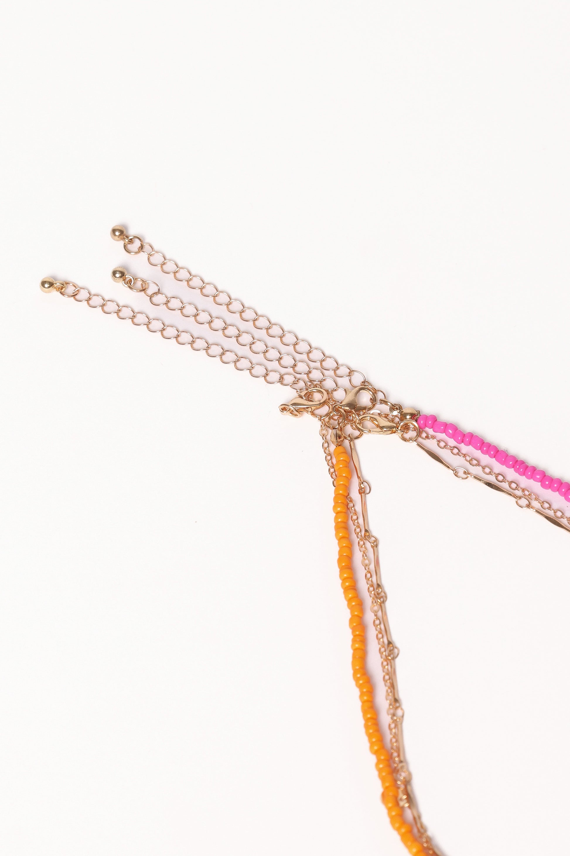 DETAILS Bring a touch of effortless elegance to your wardrobe with the Tatiana Necklace in Gold/Multi. This stunning 3-in-1 layered design combines a mix of delicate gold chains and colorful beads, adding the perfect balance of sophistication and playfulness to any outfit.