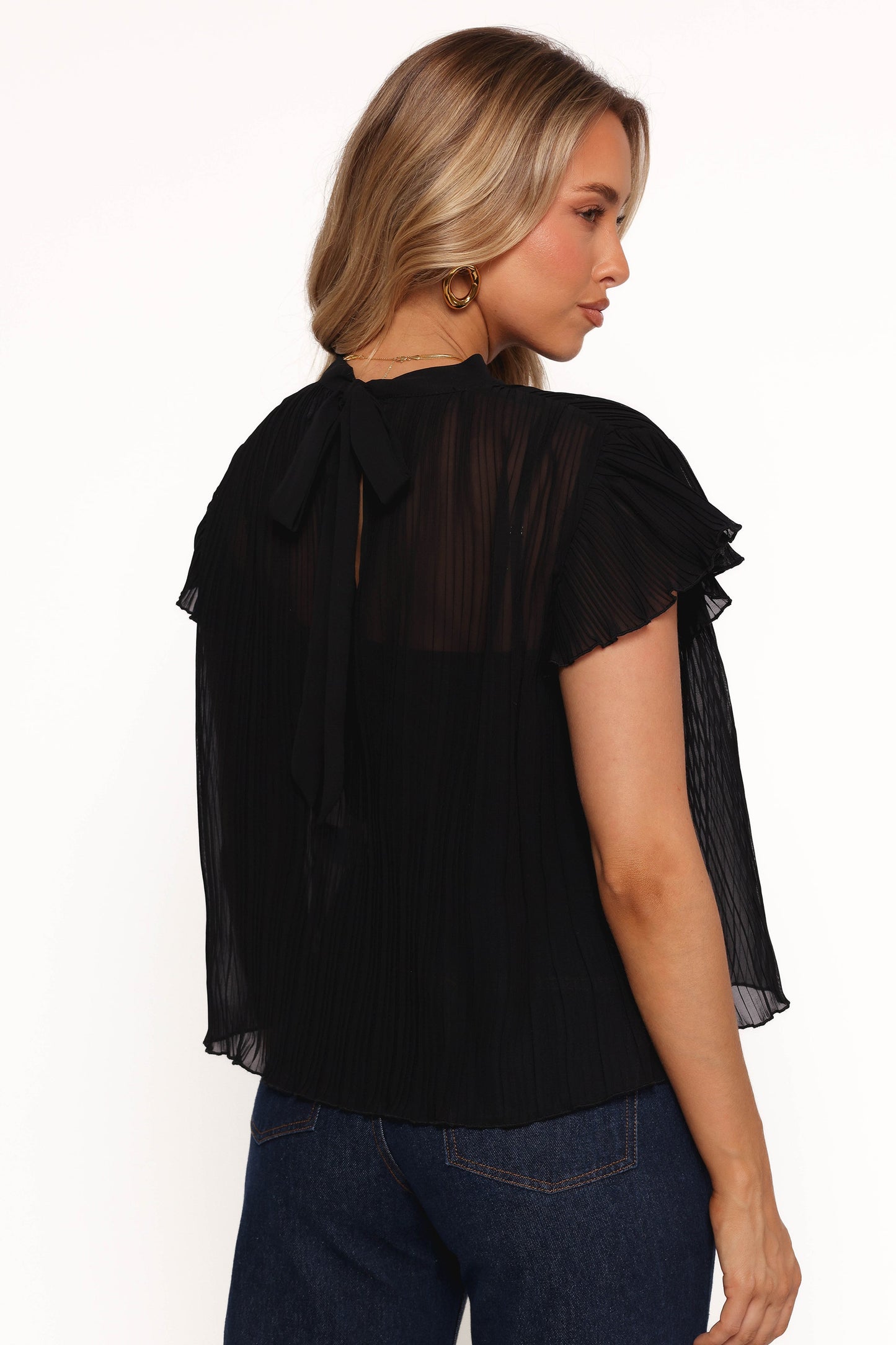 Topia Pleated Flutter Sleeve Top - Black