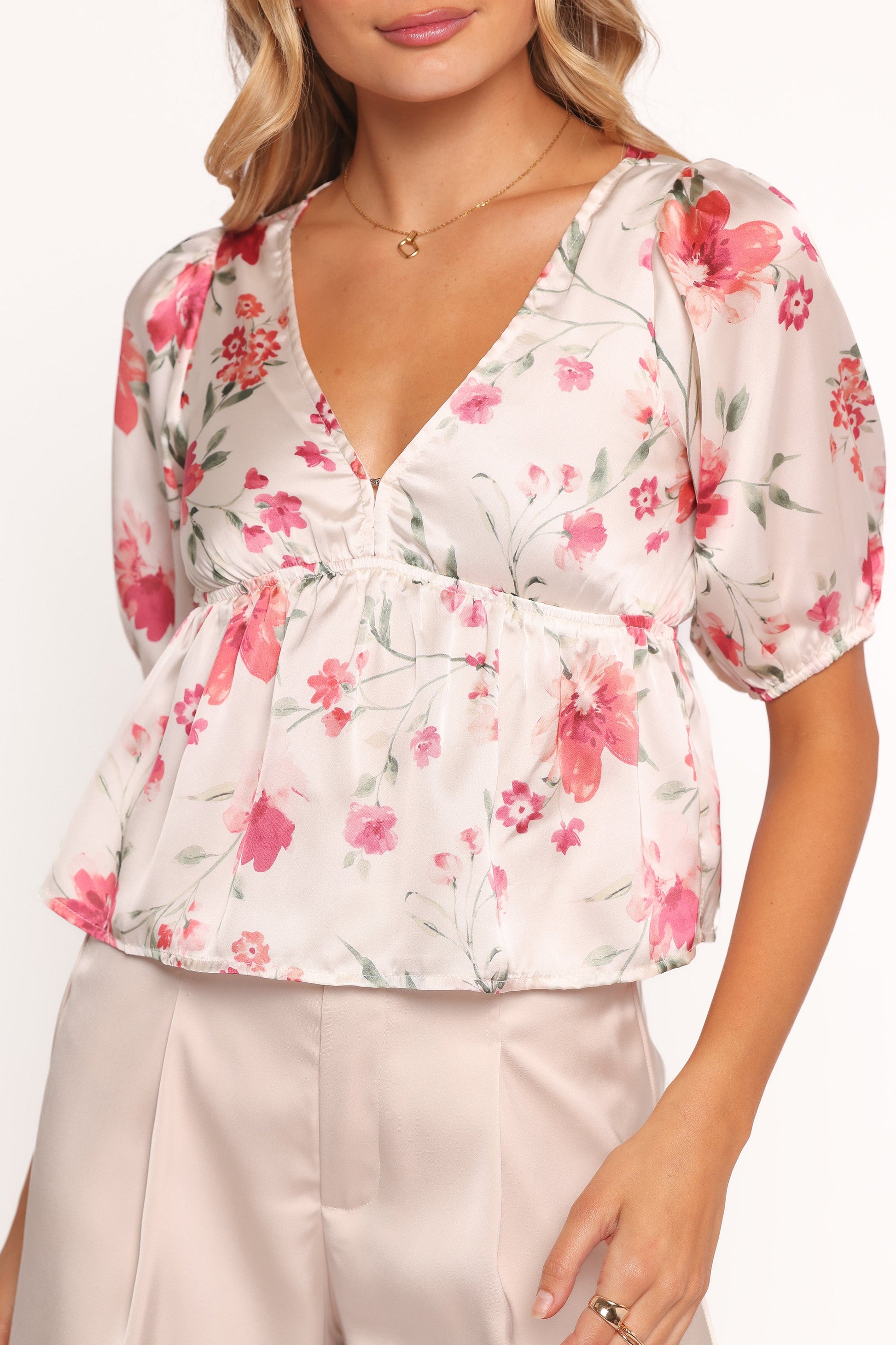 DETAILS Add a touch of effortless charm to your wardrobe with the Tove Top in Cameo Floral. Featuring a flattering v-neckline and short sleeves with elasticized cuffs, this top is all about comfort and style.