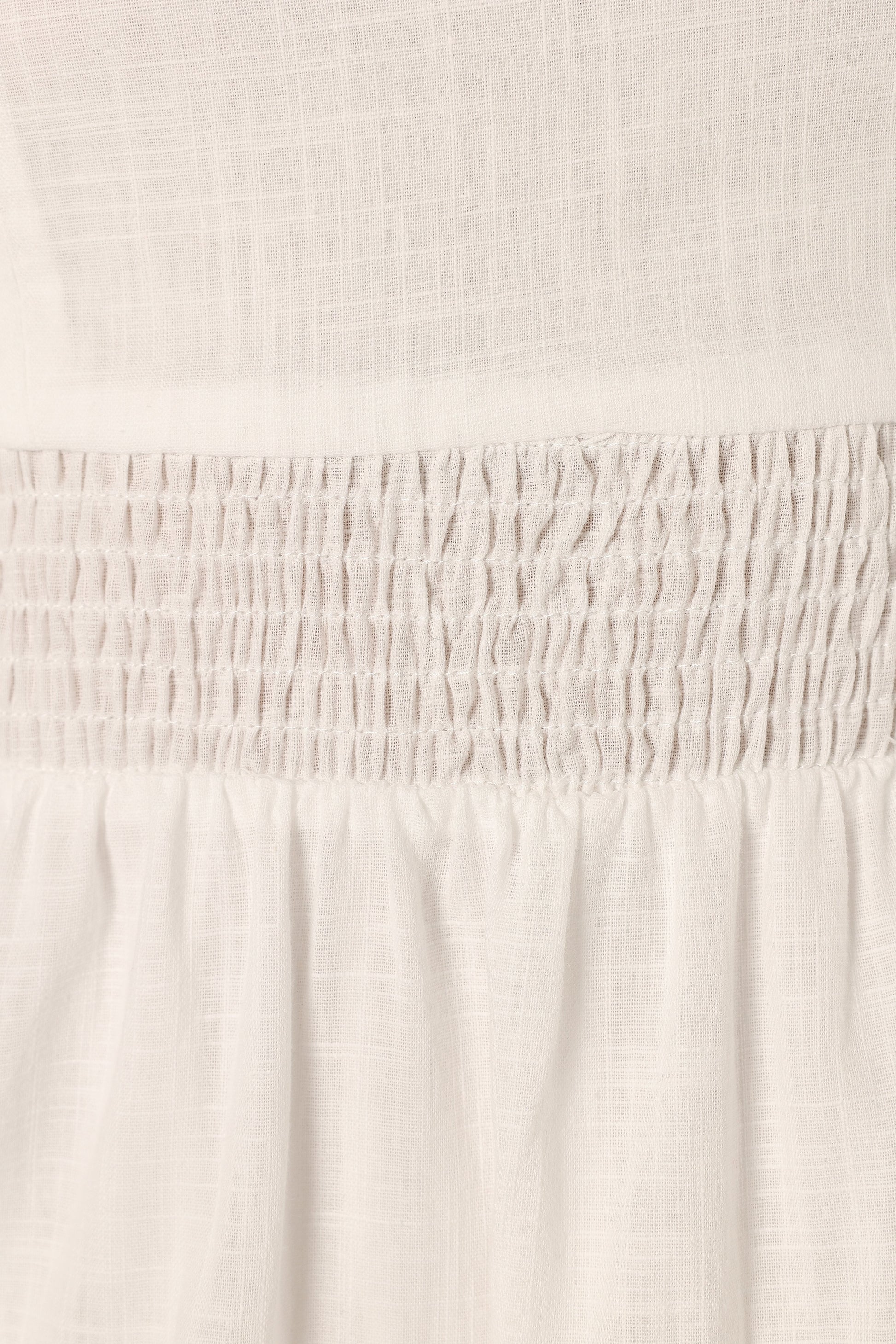 DETAILS Elevate your summer style with the Urmi Midi Dress in pristine white. This stunning piece boasts a flattering square neckline, setting the stage for the tie-close straps adding a touch of elegance. It cinches at the waist with a shirred elasticized band, before flowing into a graceful A-line skirt.