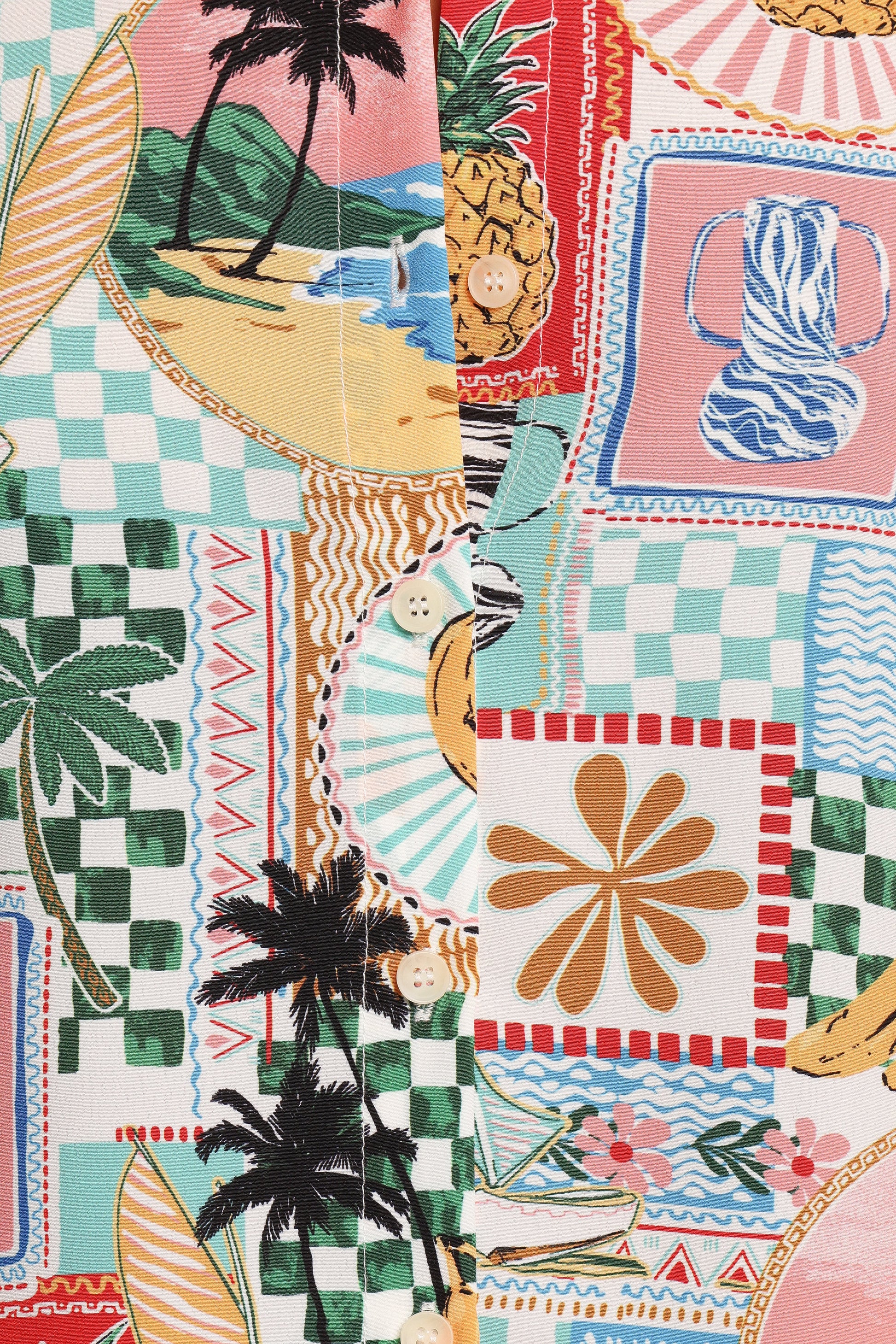 DETAILS Bring a touch of paradise to your wardrobe with the Valeria Shirt in Off White Multi. Designed with a tropical-inspired print that evokes breezy island vibes, this cropped shirt effortlessly blends style and comfort.