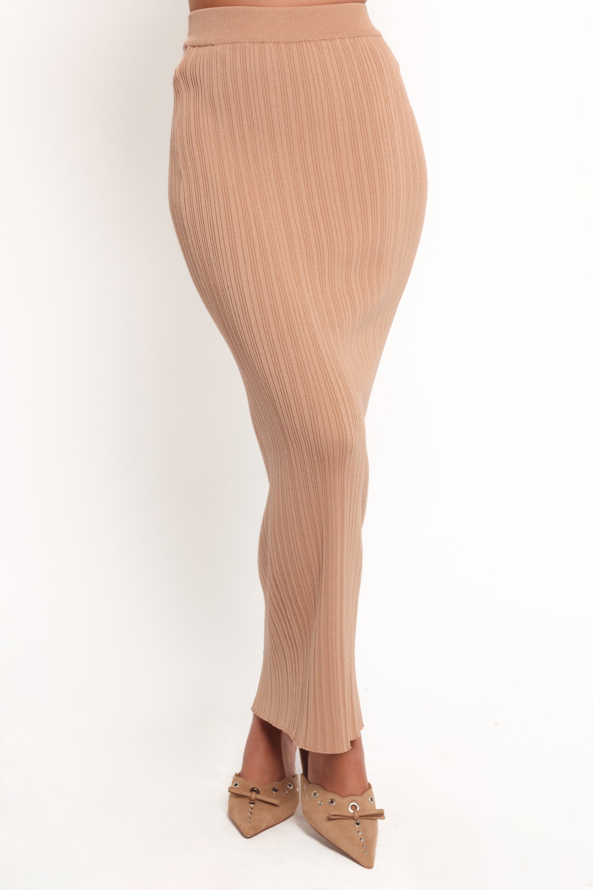DETAILS Step into effortless style with the Vienna Knitted Set in elegant beige. This chic ensemble includes a matching top and skirt, crafted from a luxurious stretch ribbed knit that hugs your curves comfortably.