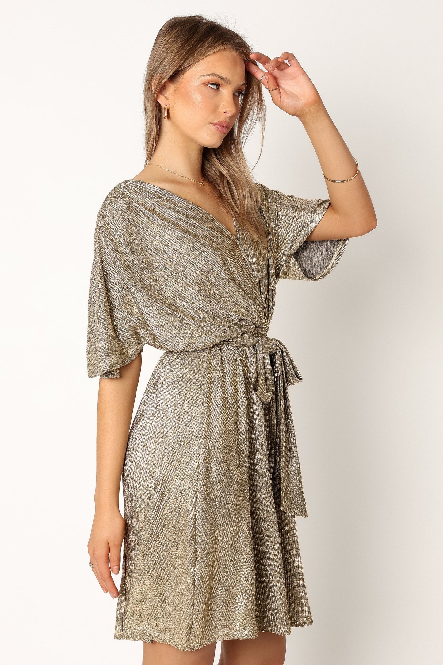 DETAILS This mini dress is the perfect way to make a statement at your next party. With its classic V-neckline and press stud closure, it's sure to be a showstopper. The short sleeves and elasticised waist with belt loops will ensure you look on point all night long.