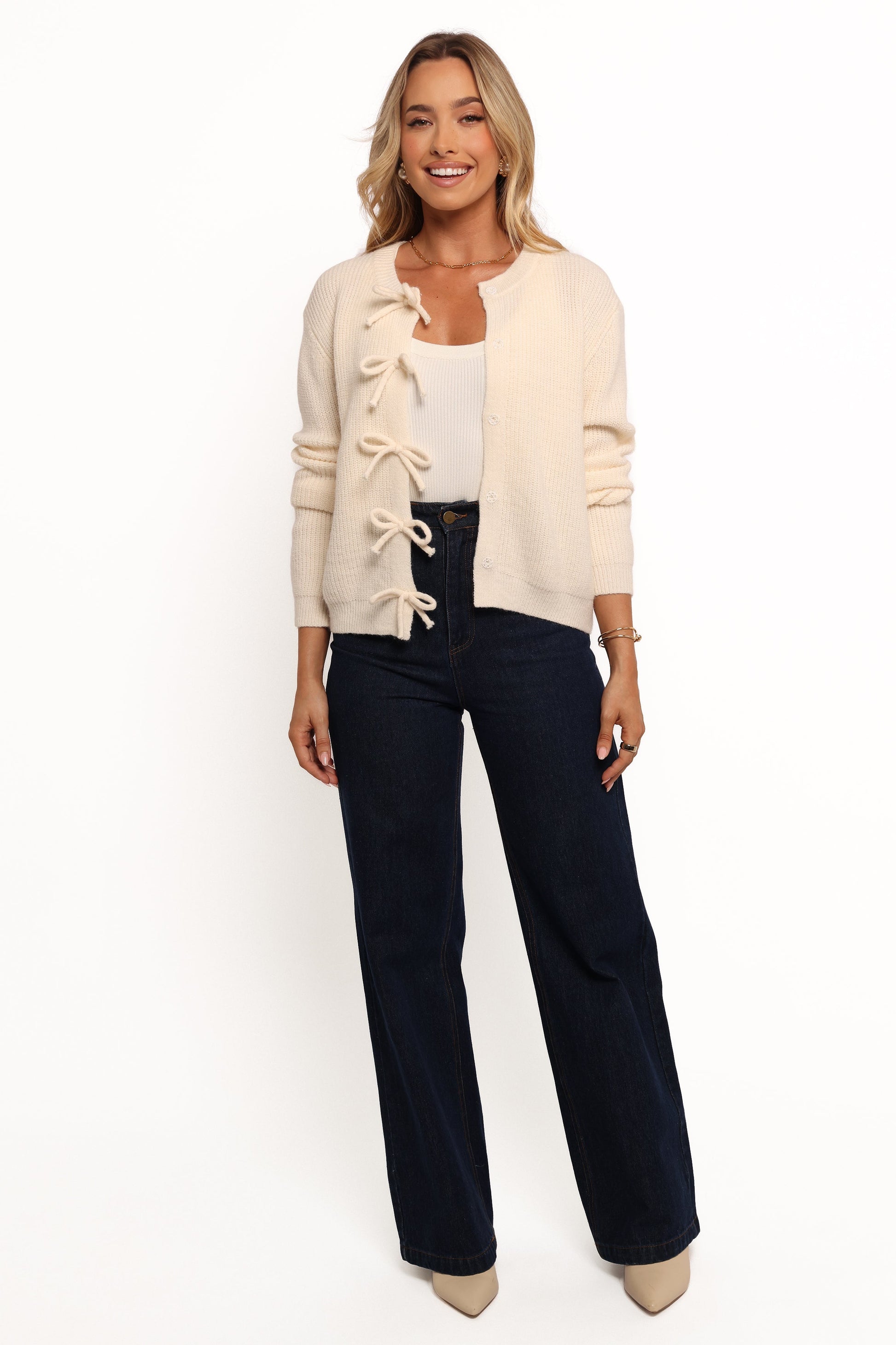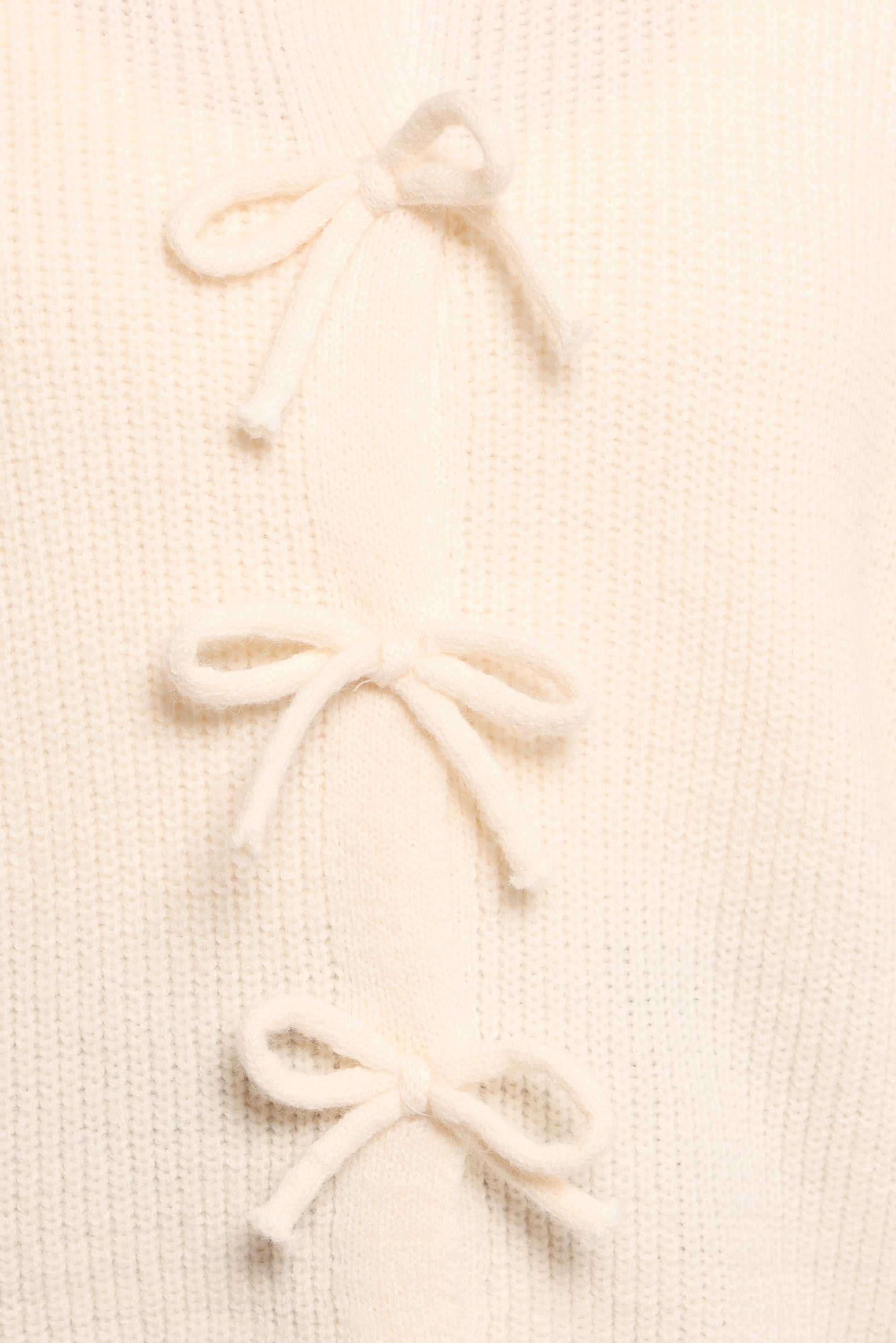 DETAILS This cardigan boasts a timeless round-neckline and long sleeves, finished with ribbed cuffs that gently hug the wrists. It's the bow feature that truly sets this cardigan apart, each artfully accentuated against each button, creating a stunning classic visual that's bound to turn heads.?