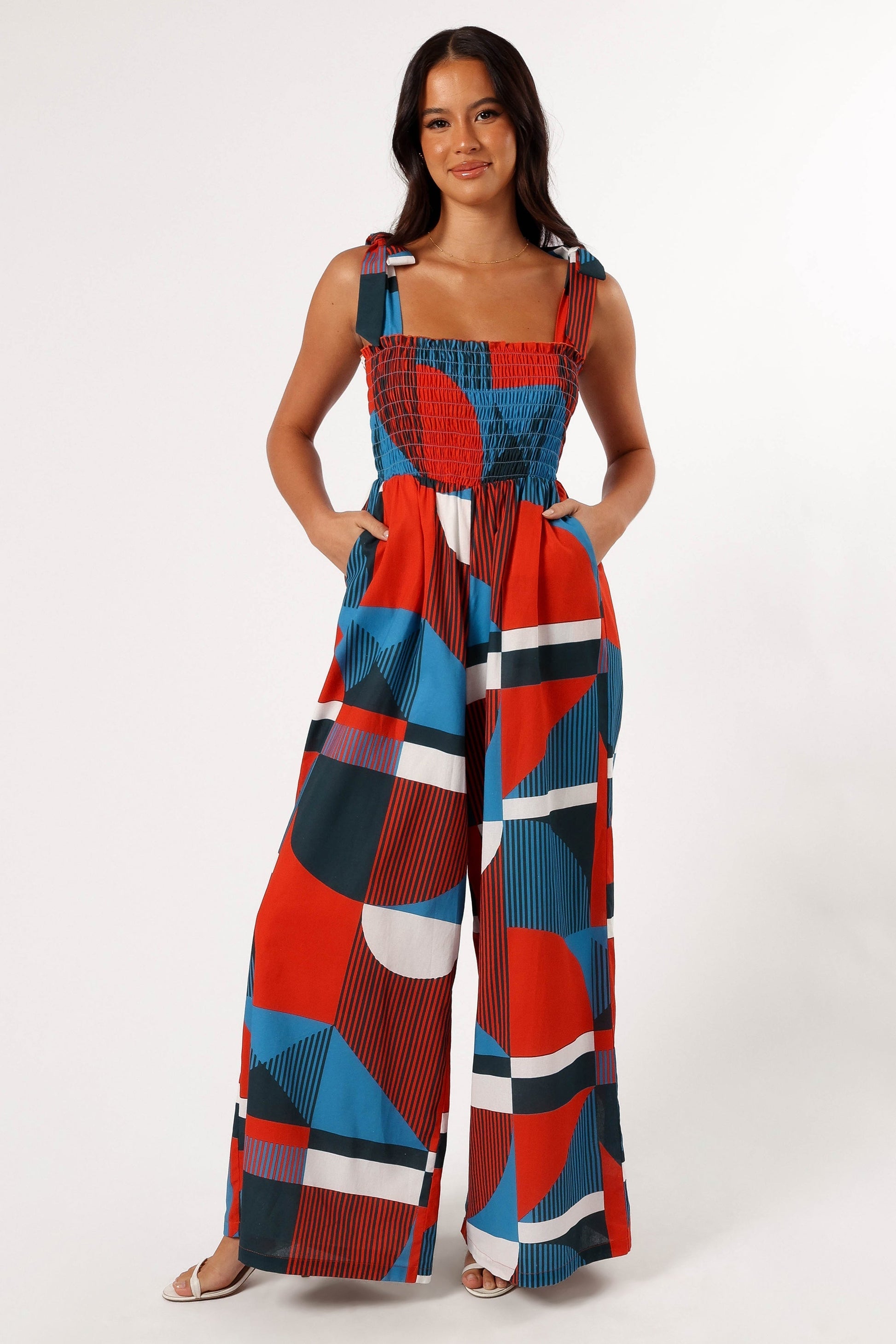 DETAILS Life is too short for boring fashion, so why not switch things up with this oh-so-cute jumpsuit! With a flattering square neckline, tie shoulder straps and shirred bodice - you'll look your best while feeling comfortable.